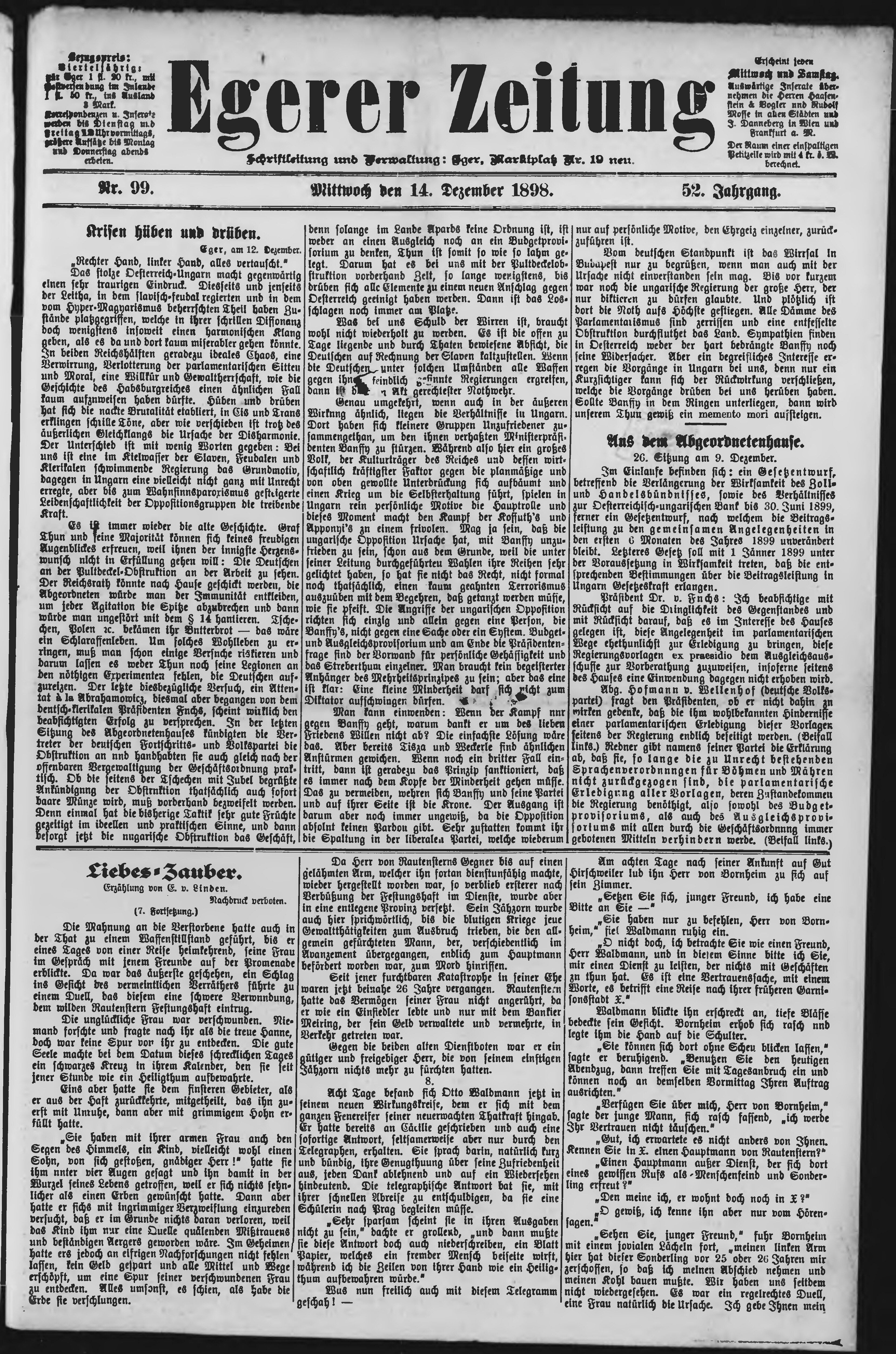 * Datum vydání výtisku: 14.12.1898 Číslo výtisku: 99