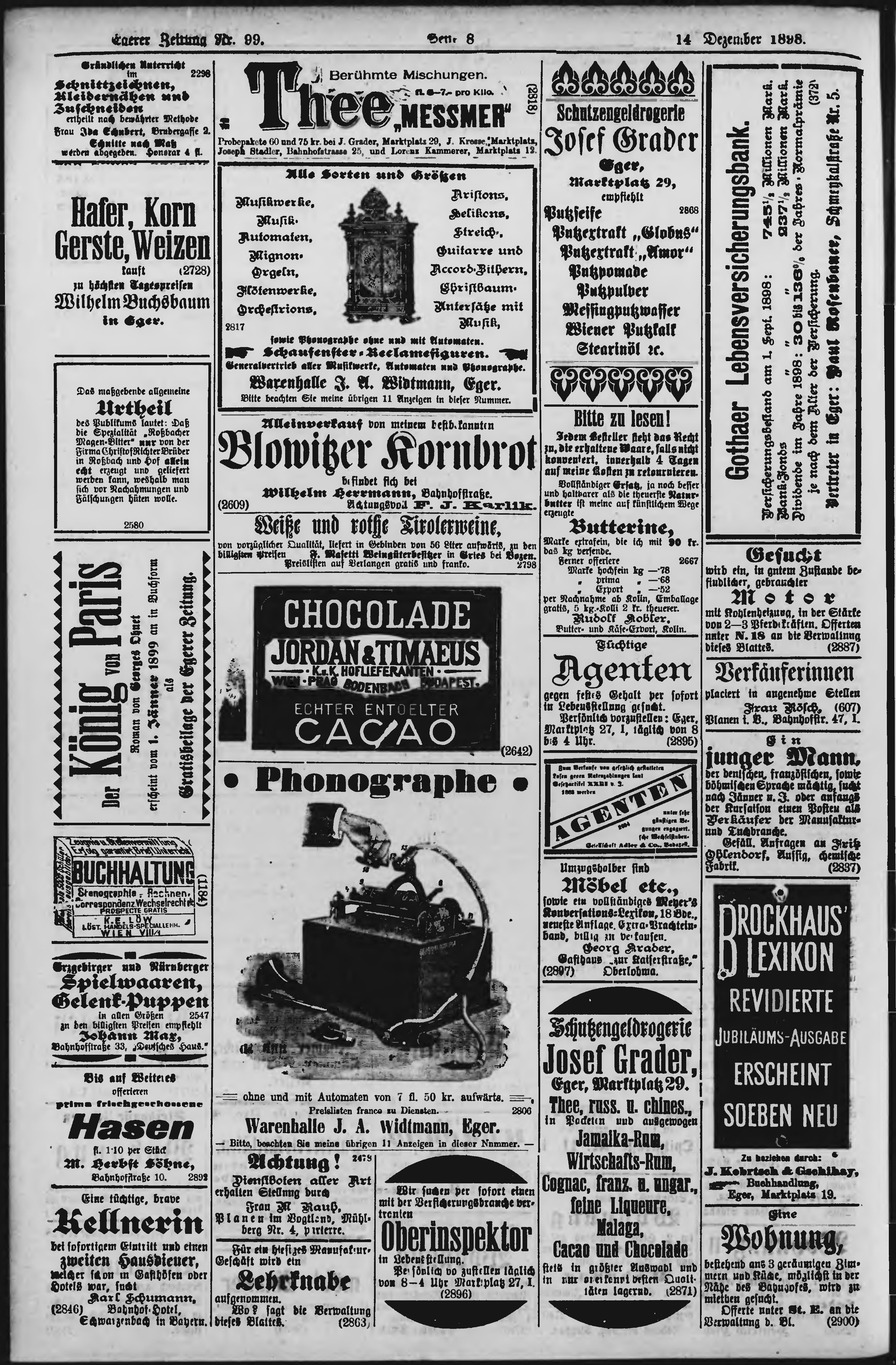 * Datum vydání výtisku: 14.12.1898 Číslo výtisku: 99