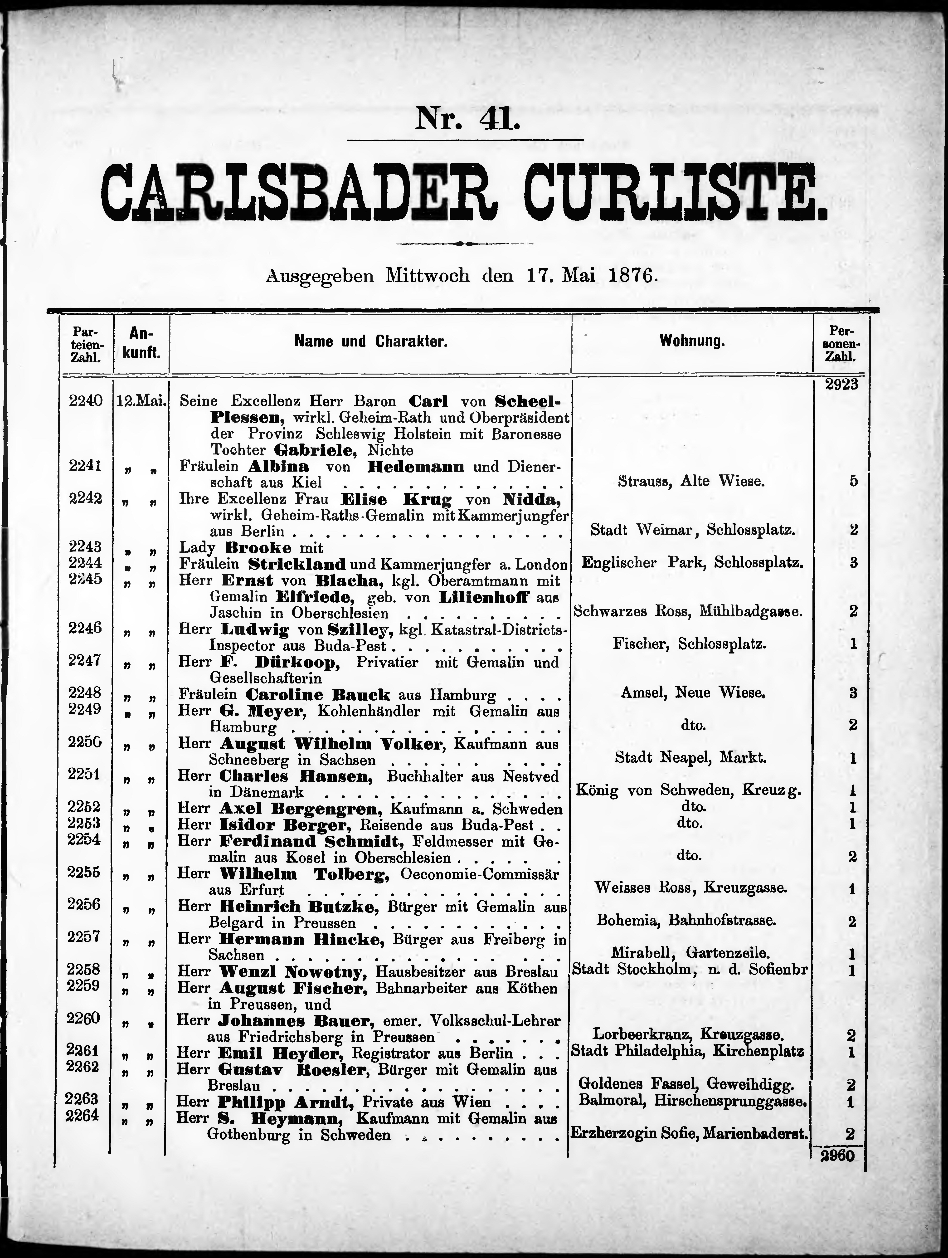 Liste der im Jahre ... angekommenen und abgereisten Kur- und Badegäste in Karlsb...