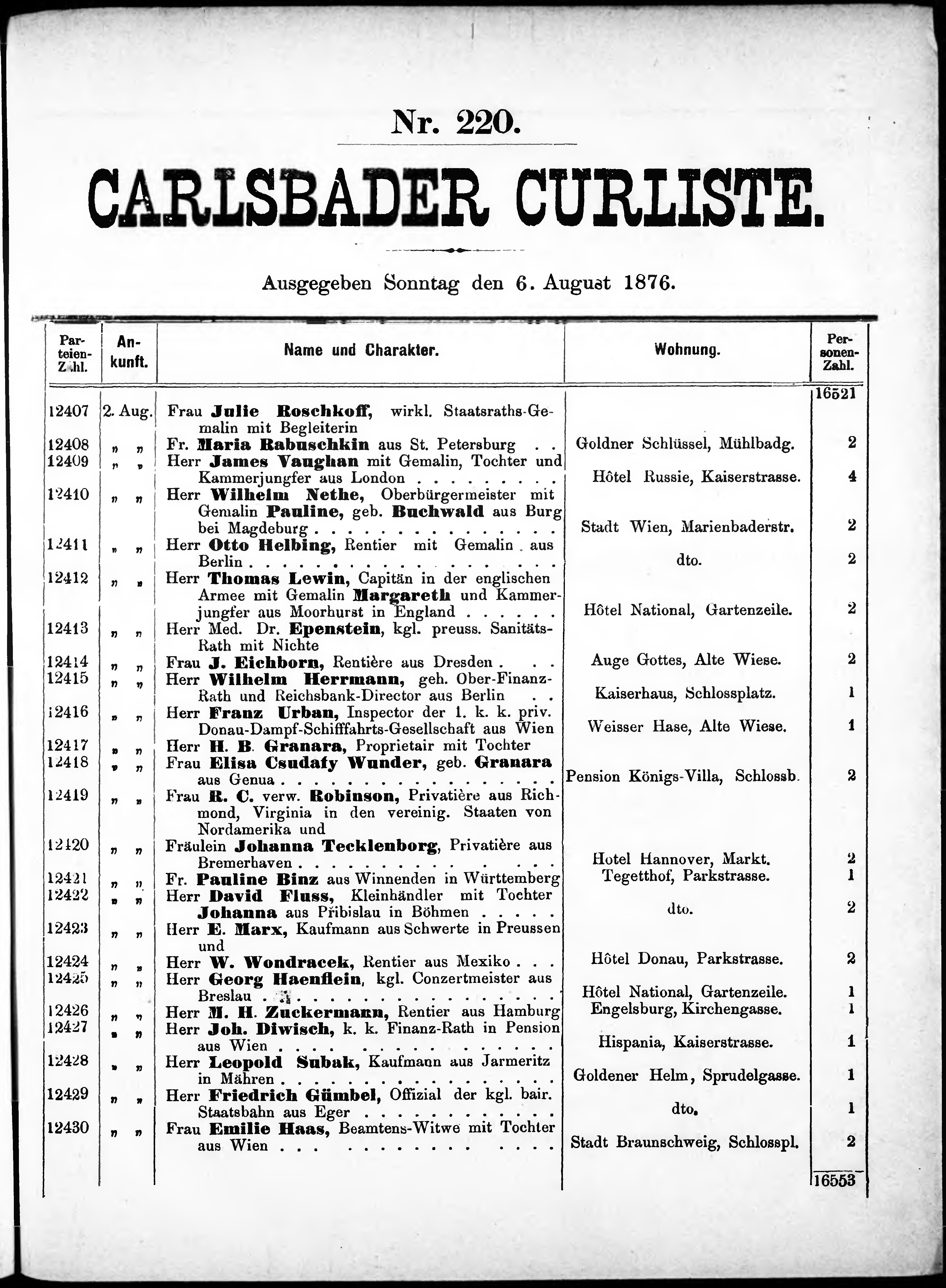 Liste der im Jahre ... angekommenen und abgereisten Kur- und Badegäste in Karlsb...