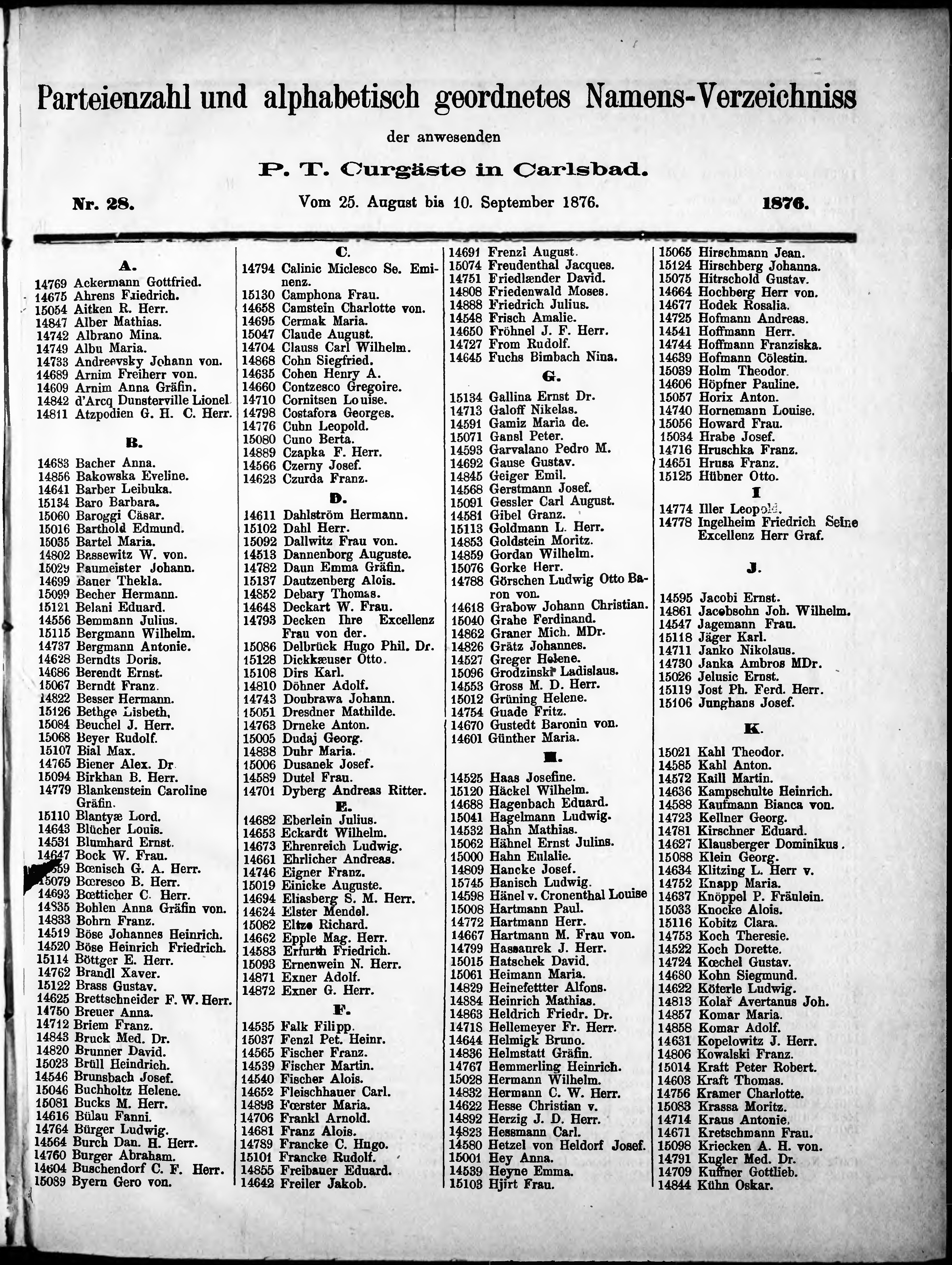 Liste der im Jahre ... angekommenen und abgereisten Kur- und Badegäste in Karlsb...