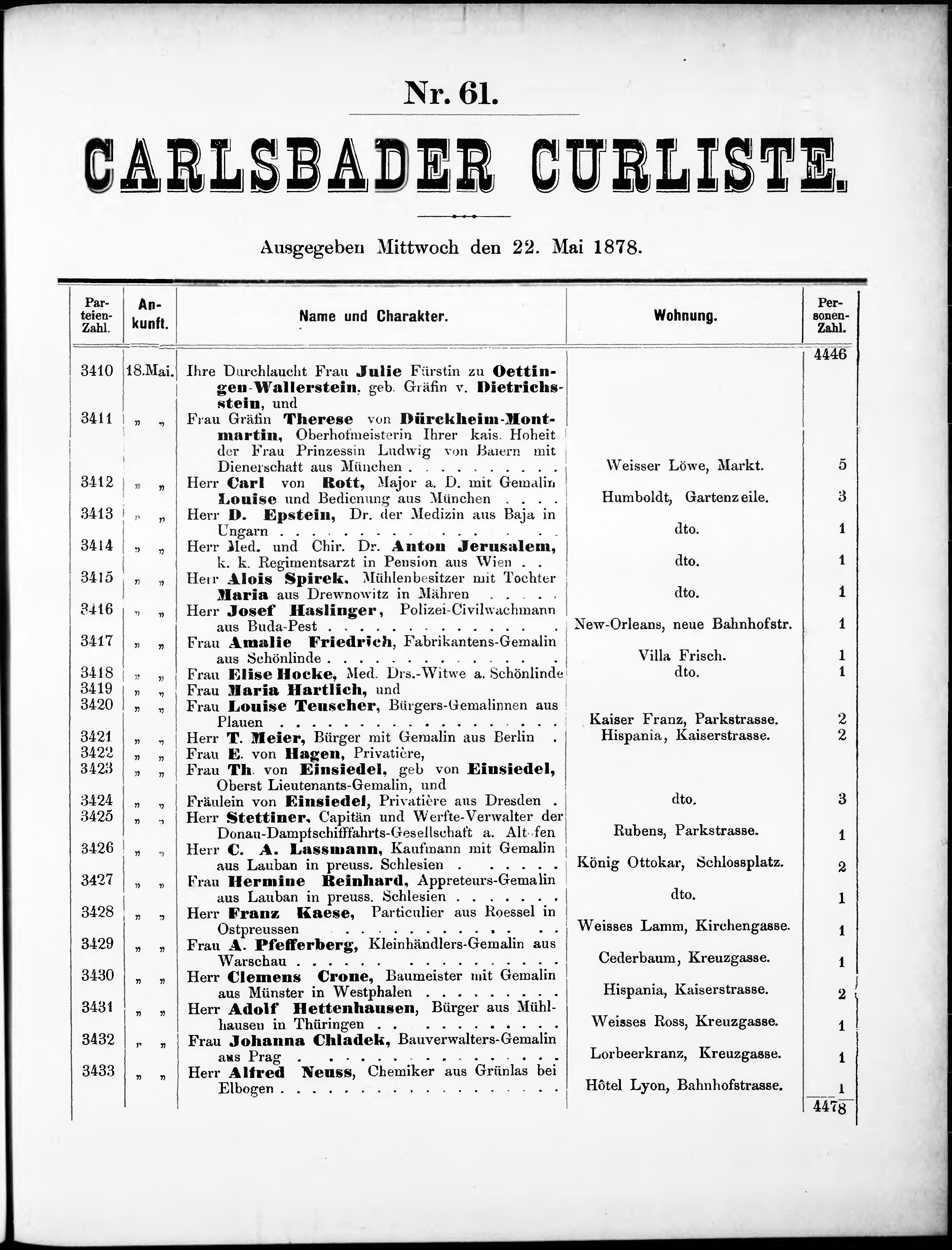 Liste der P.T. Curgäste in Carlsbad ...