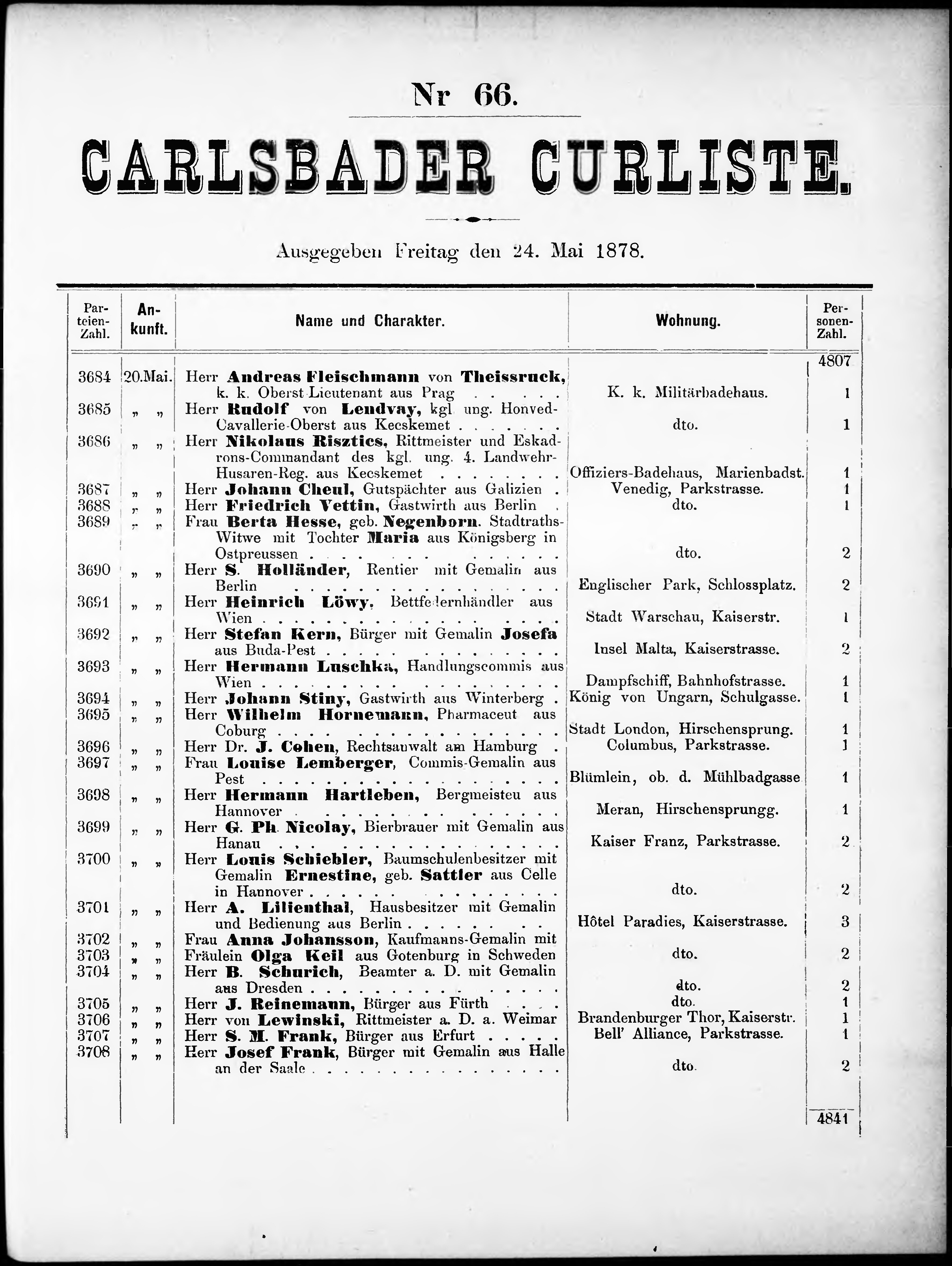 * Datum vydání výtisku: 24.5.1878 Číslo výtisku: 66