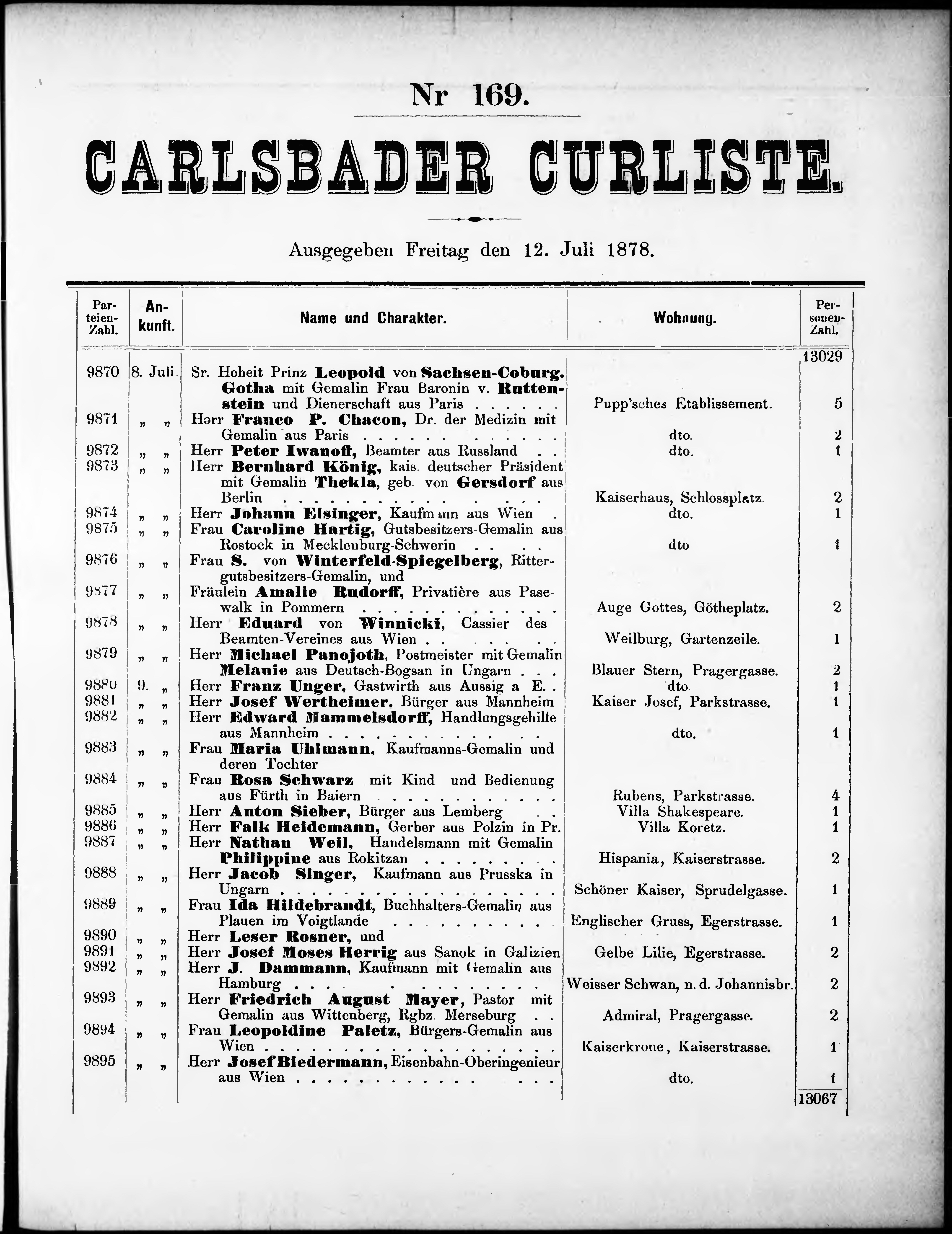 Liste der P.T. Curgäste in Carlsbad ...