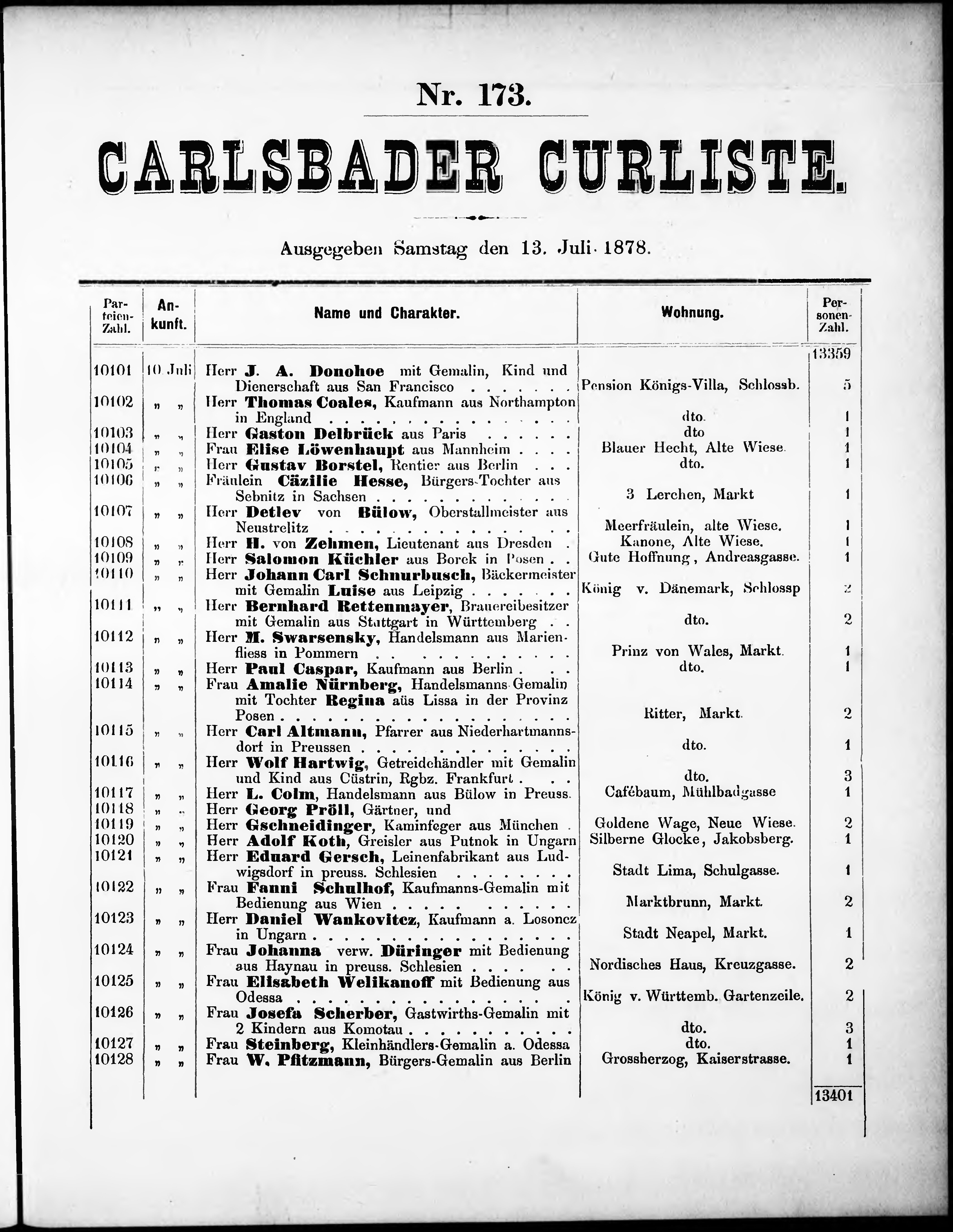 Liste der P.T. Curgäste in Carlsbad ...