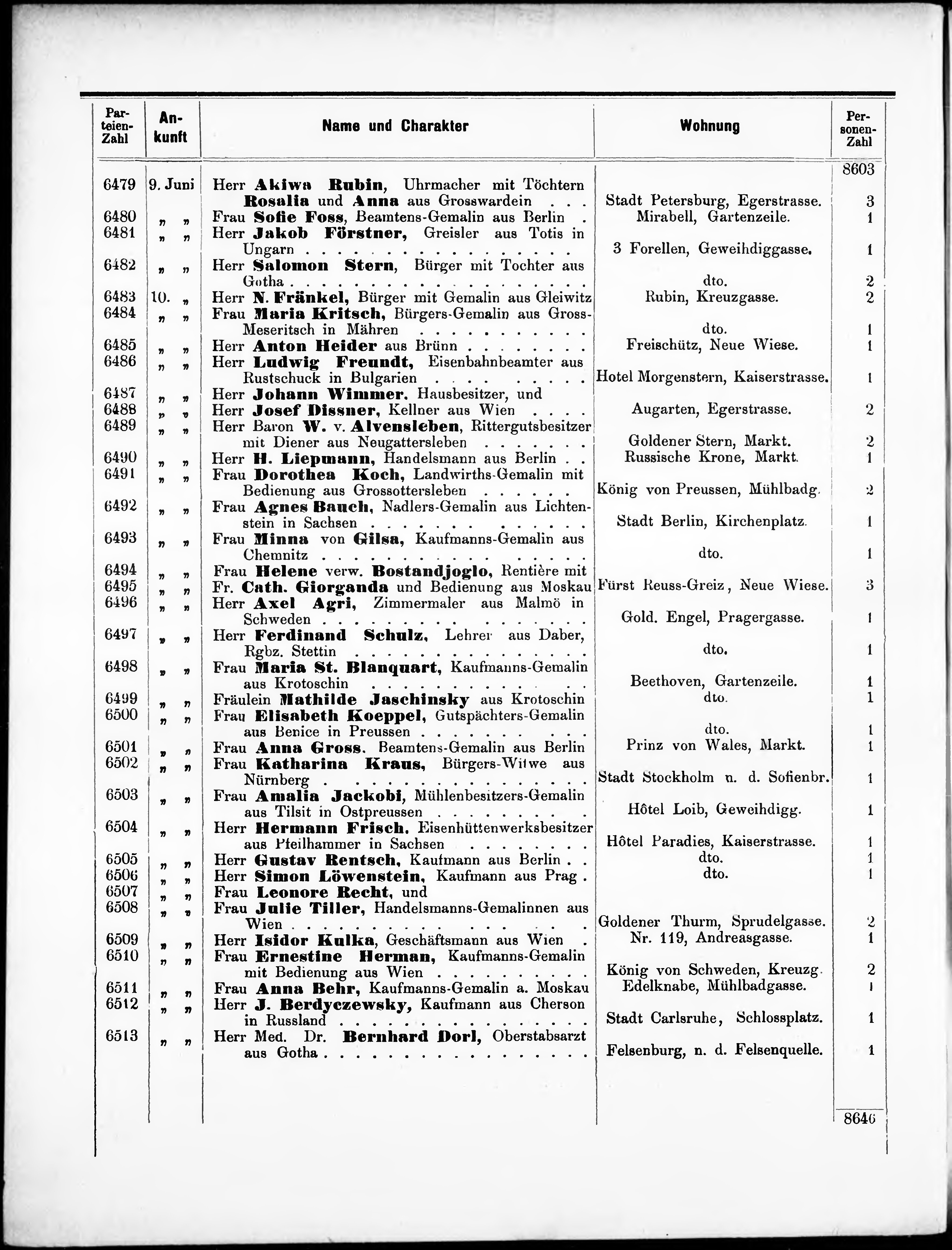 Liste der P.T. Curgäste in Carlsbad ...