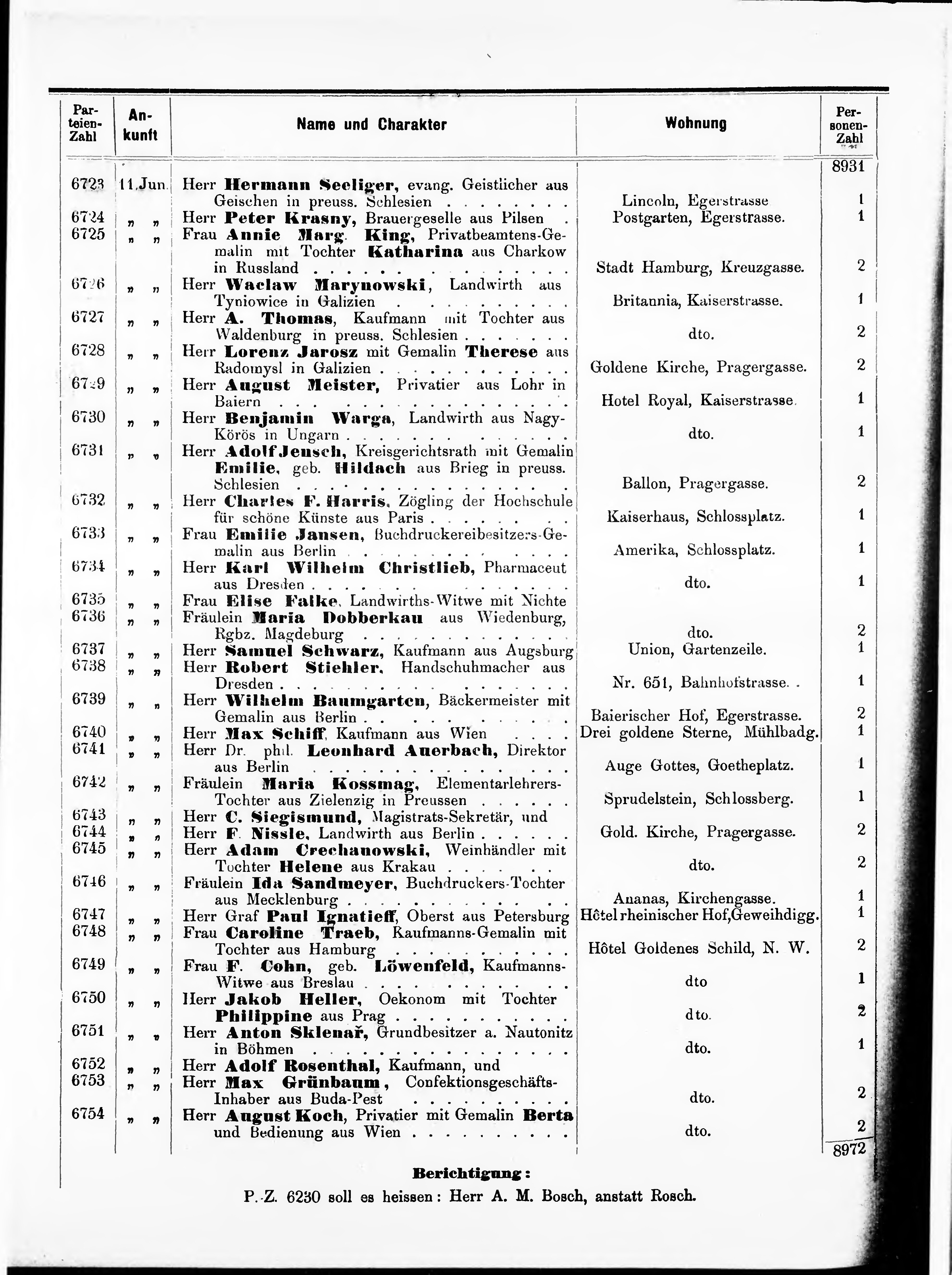 Liste der P.T. Curgäste in Carlsbad ...