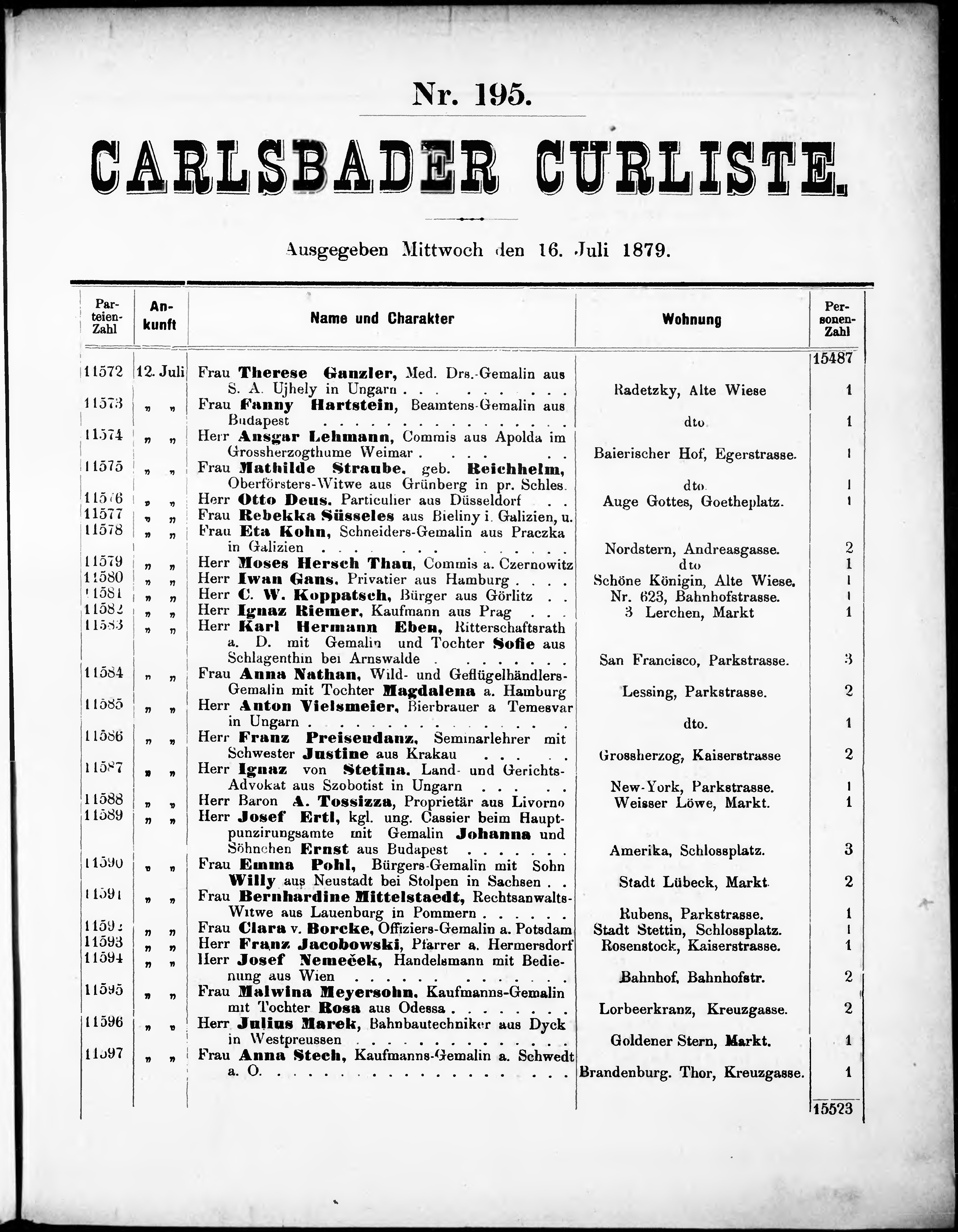 Liste der P.T. Curgäste in Carlsbad ...