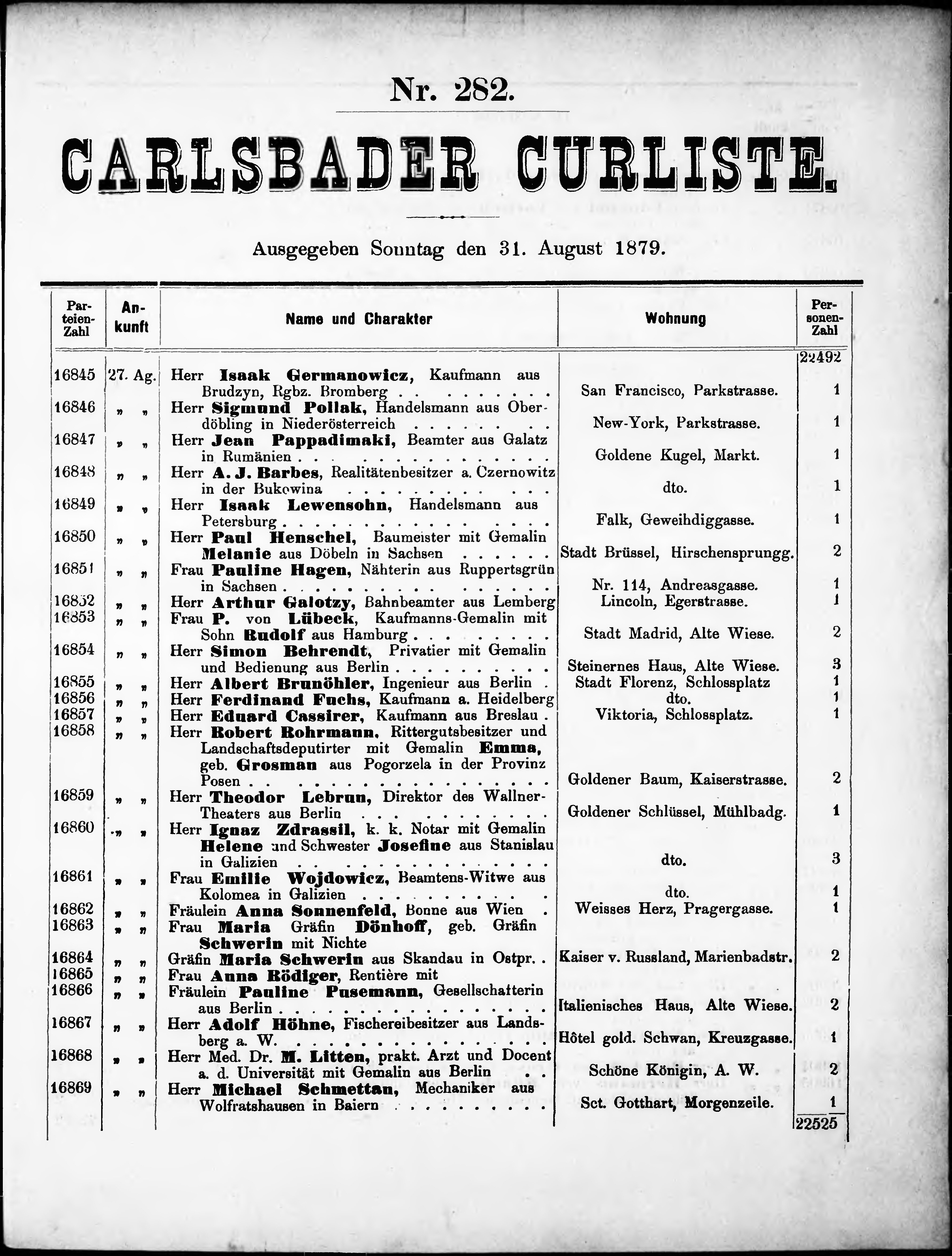 * Datum vydání výtisku: 31.8.1879 Číslo výtisku: 282