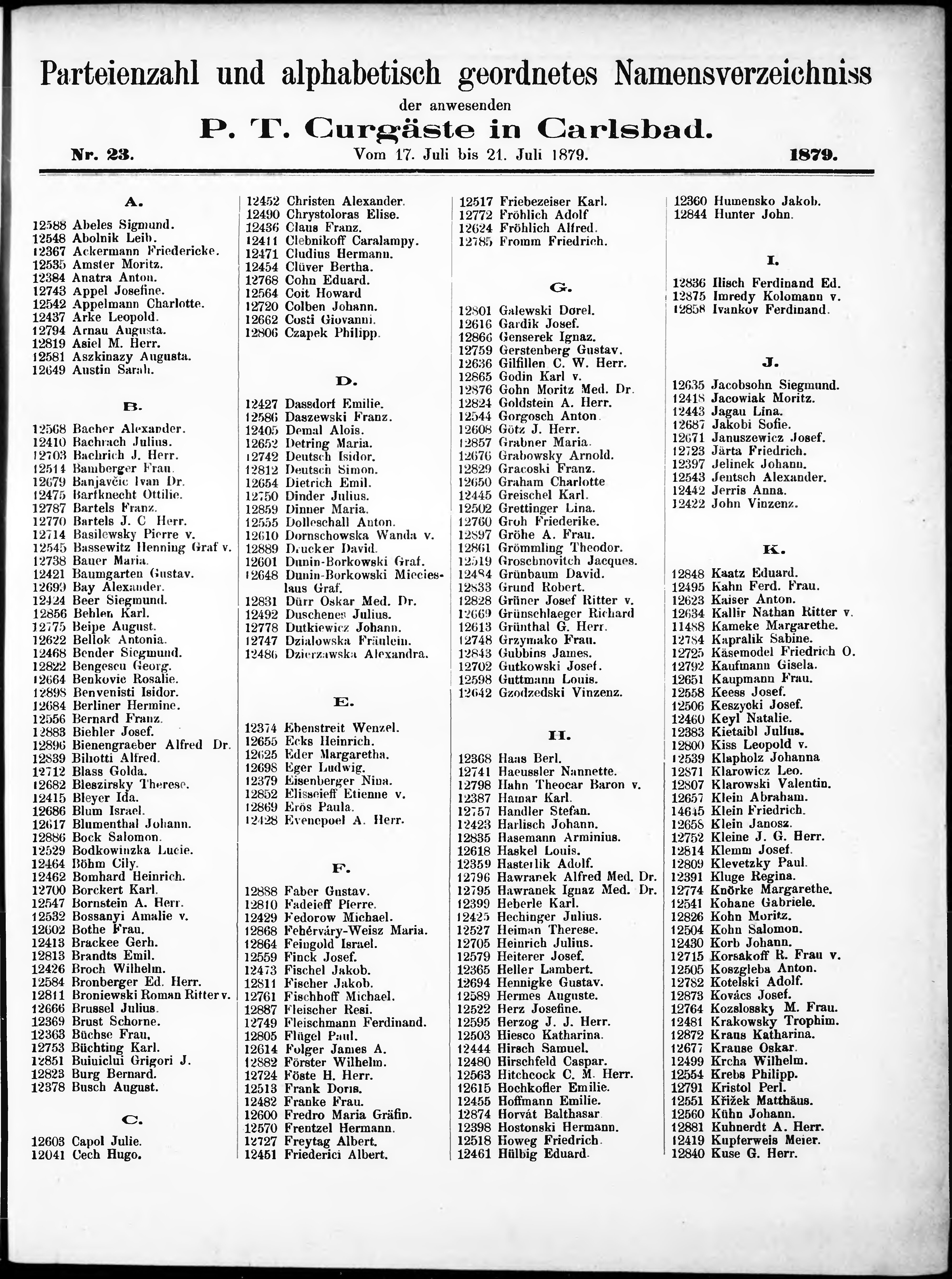 Liste der P.T. Curgäste in Carlsbad ...