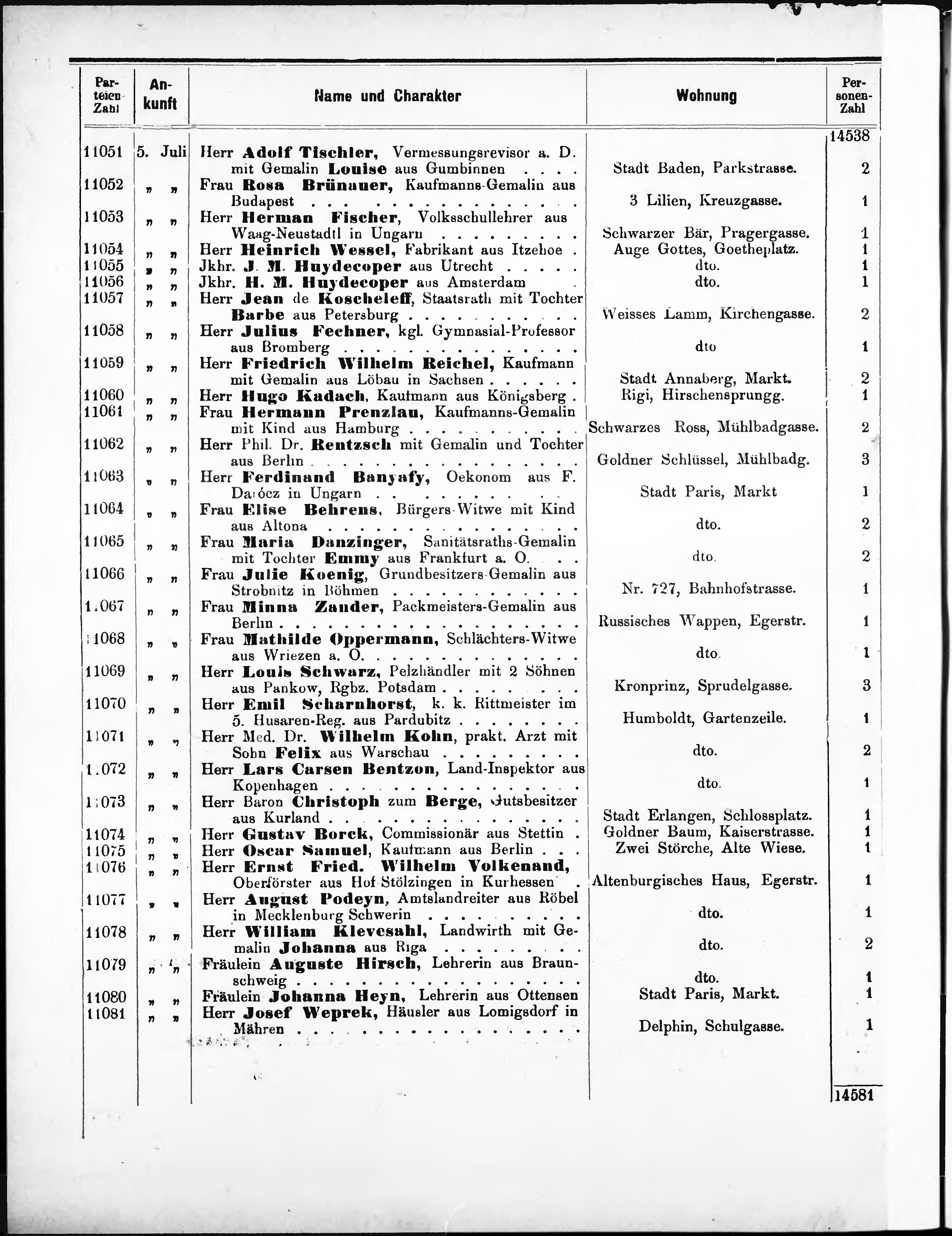Liste der P.T. Curgäste in Carlsbad ...