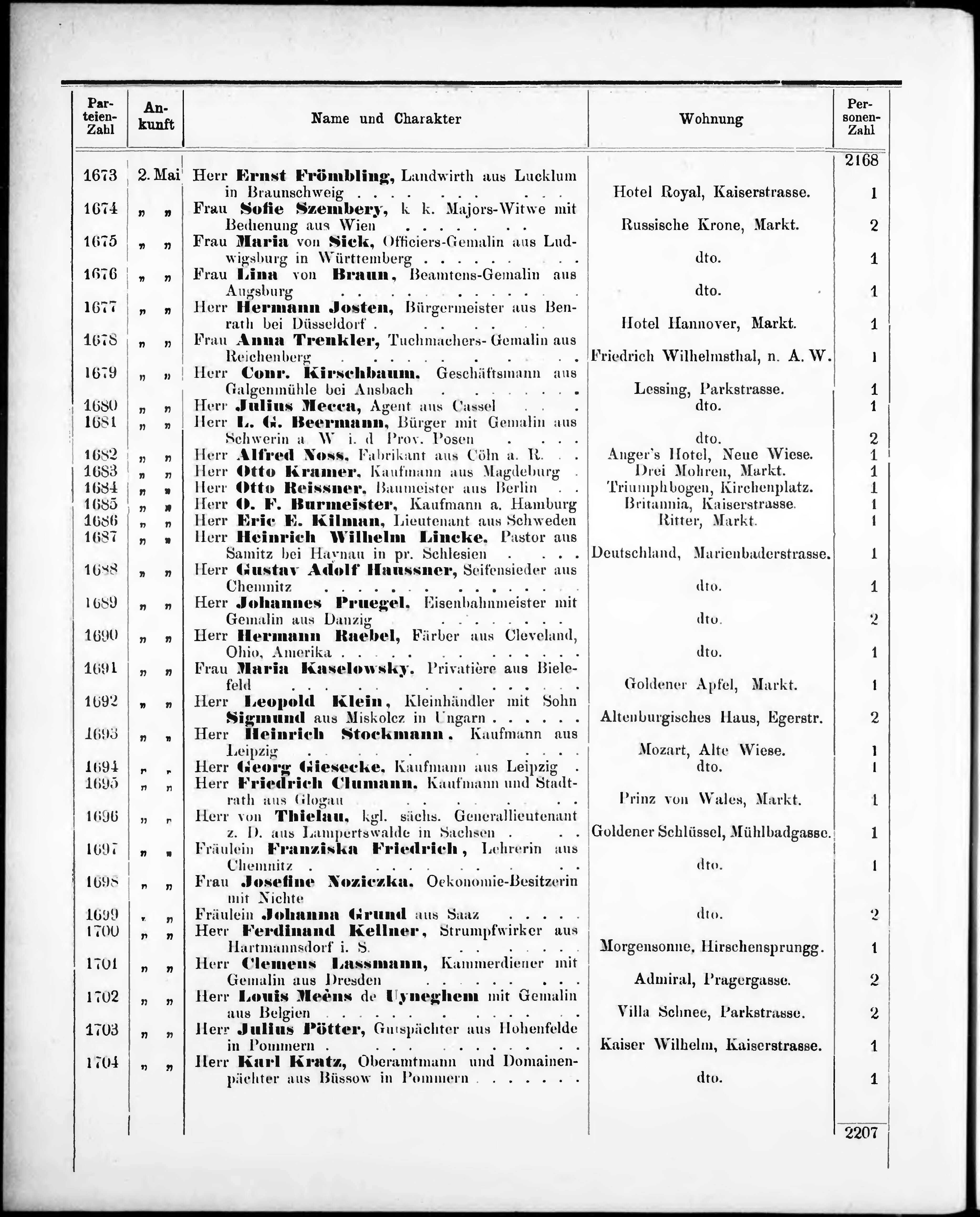 Liste der im Jahre ... angekommenen und abgereisten Kur- und Badegäste in Karlsb...