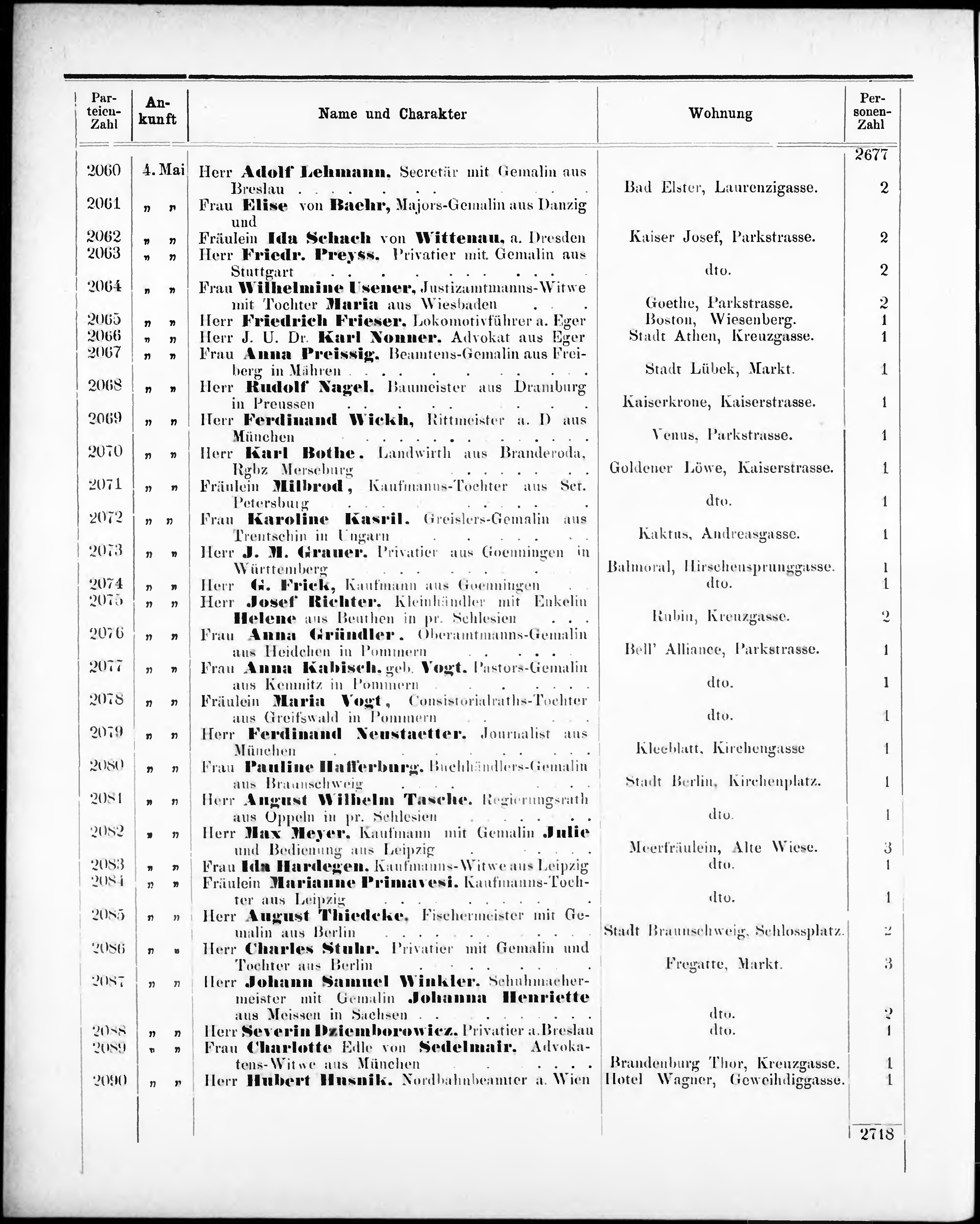 Liste der im Jahre ... angekommenen und abgereisten Kur- und Badegäste in Karlsb...