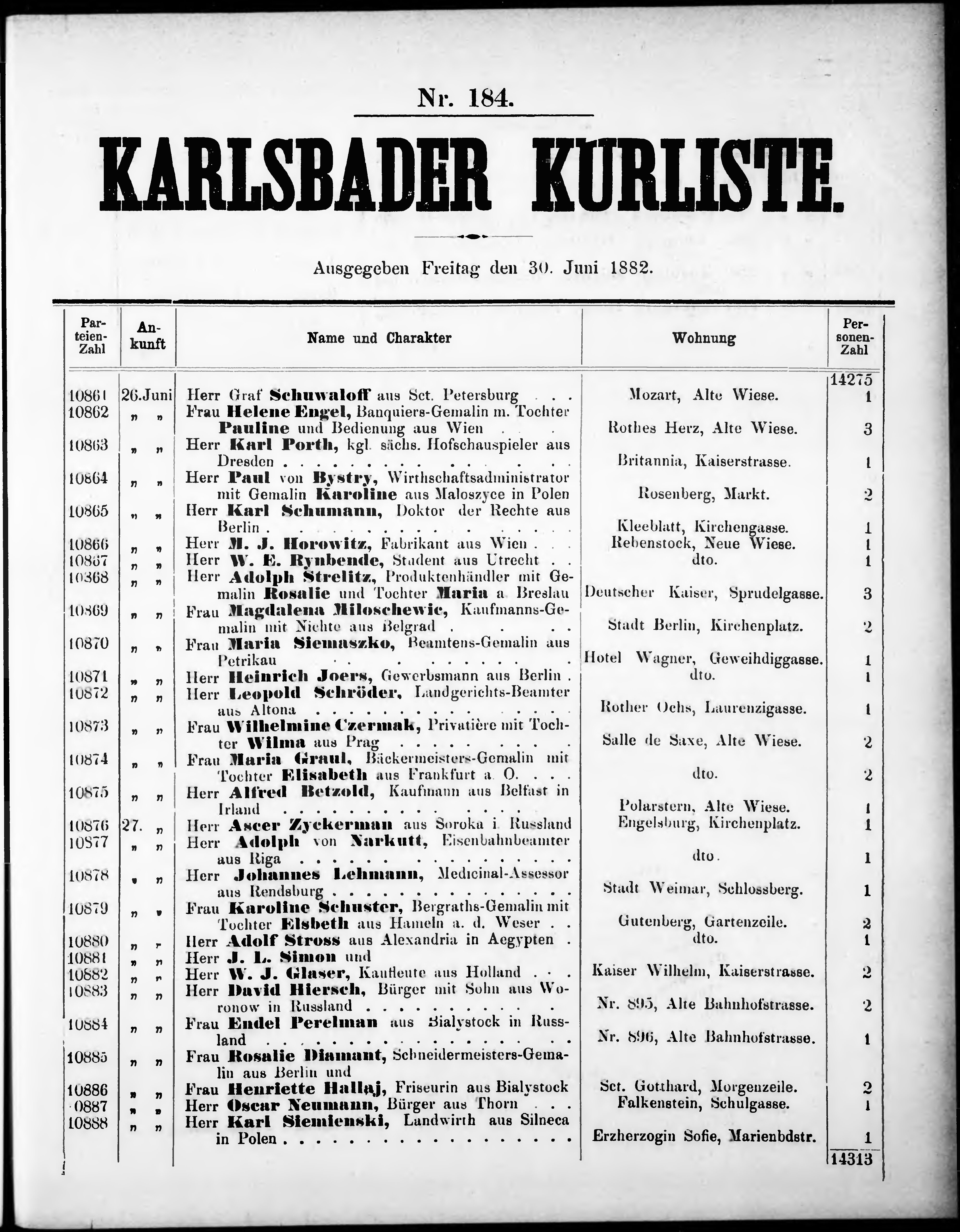Liste der im Jahre ... angekommenen und abgereisten Kur- und Badegäste in Karlsb...