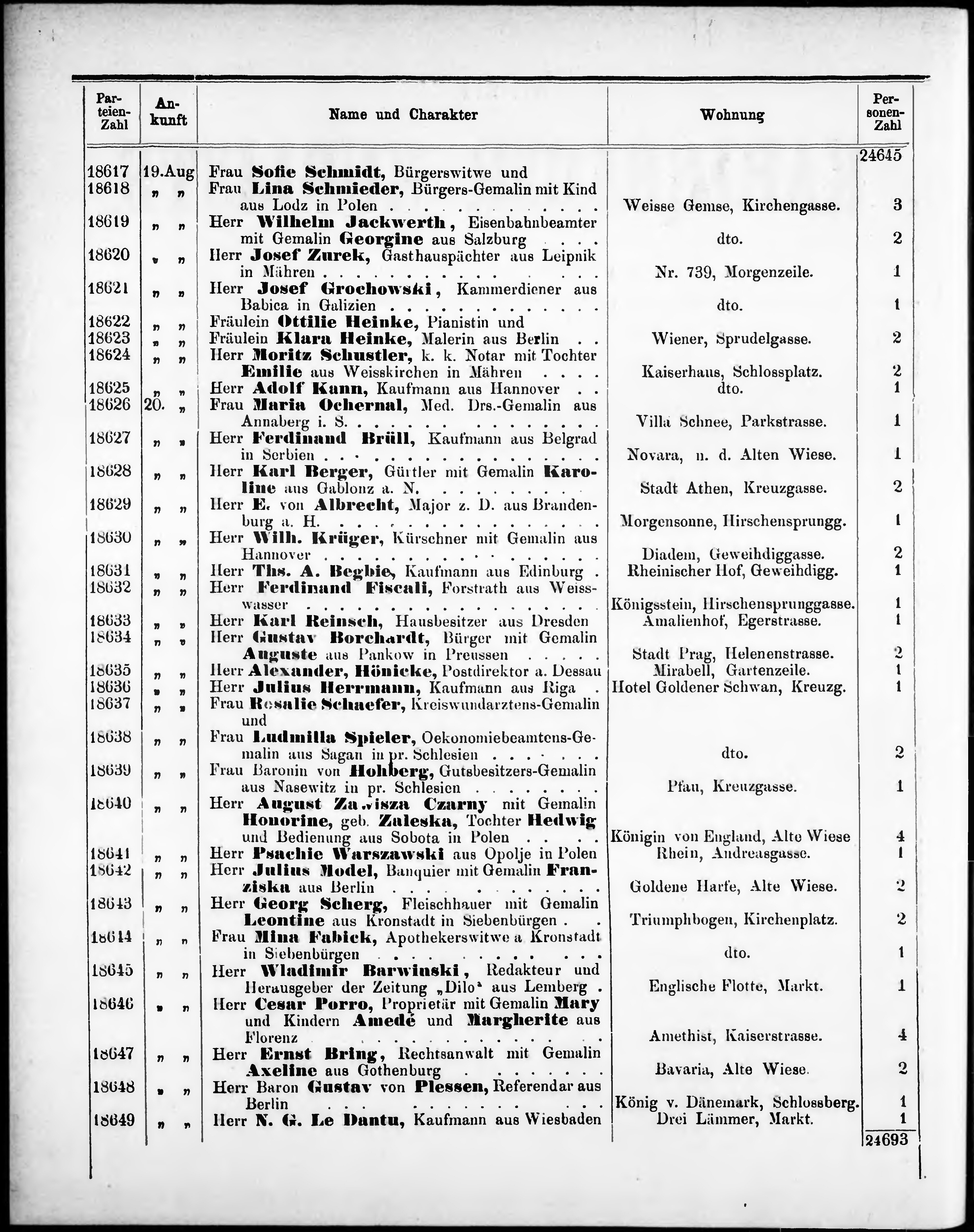 Liste der im Jahre ... angekommenen und abgereisten Kur- und Badegäste in Karlsb...