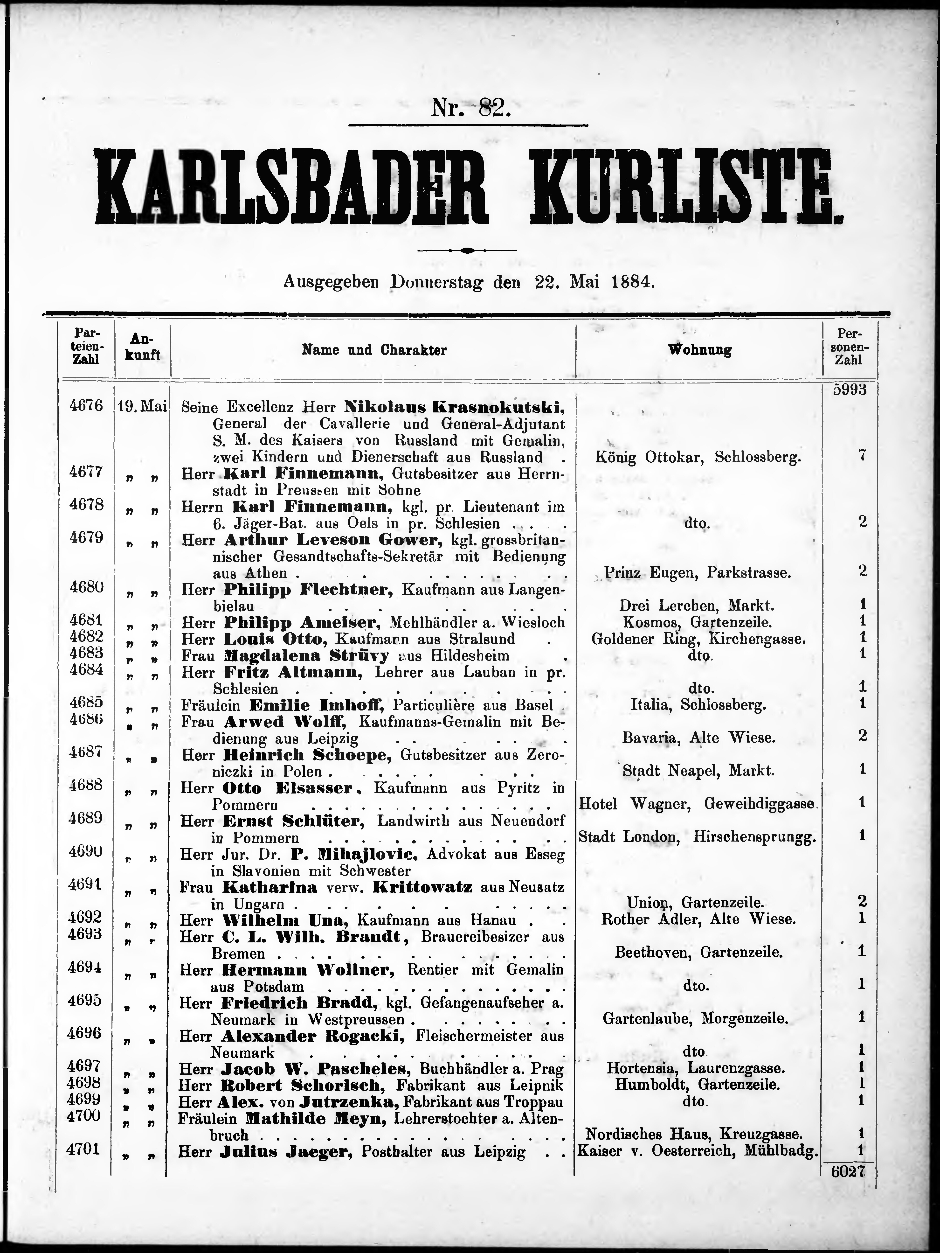 Liste der im Jahre ... angekommenen und abgereisten Kur- und Badegäste in Karlsb...