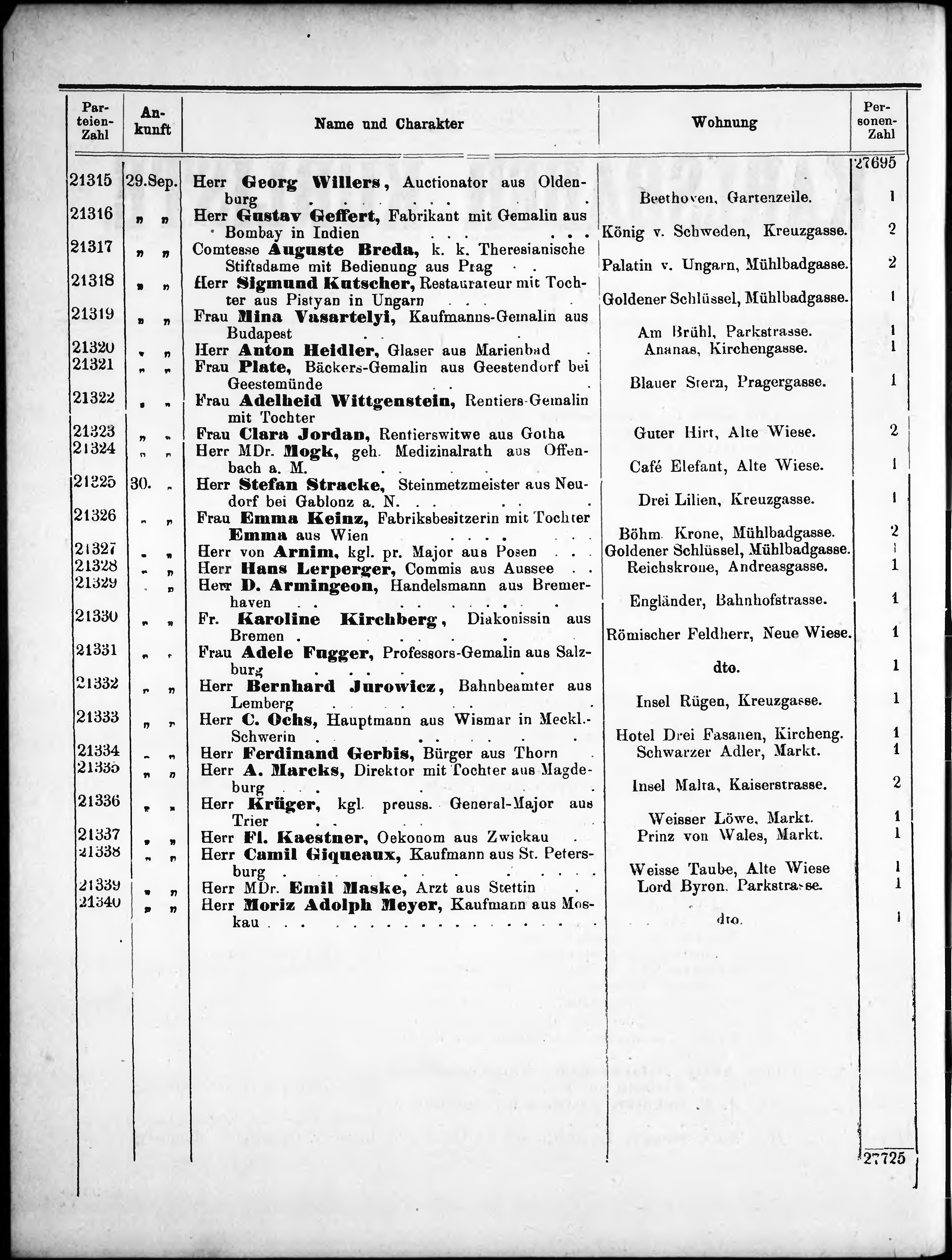 Liste der im Jahre ... angekommenen und abgereisten Kur- und Badegäste in Karlsb...