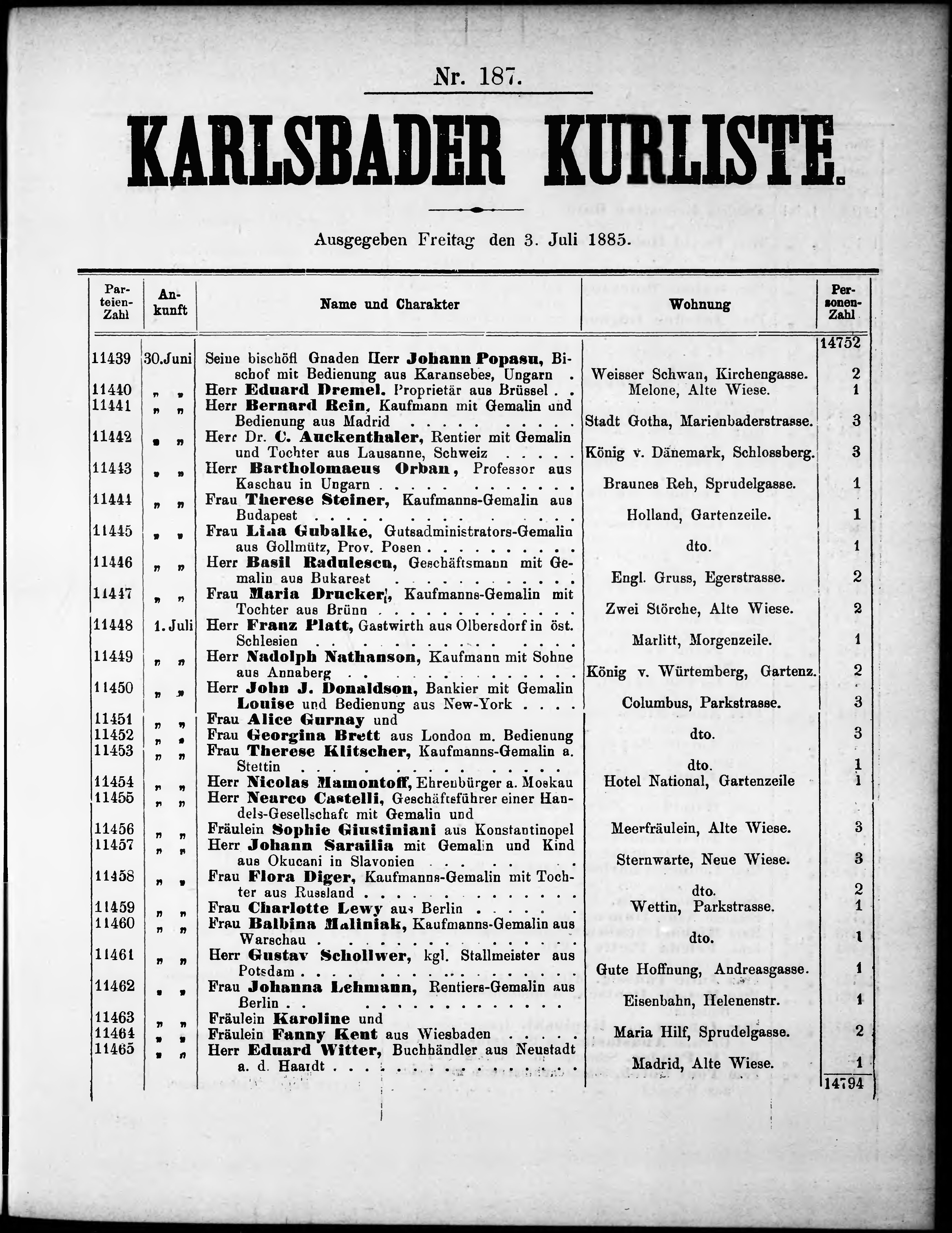 Liste der P.T. Curgäste in Carlsbad ...
