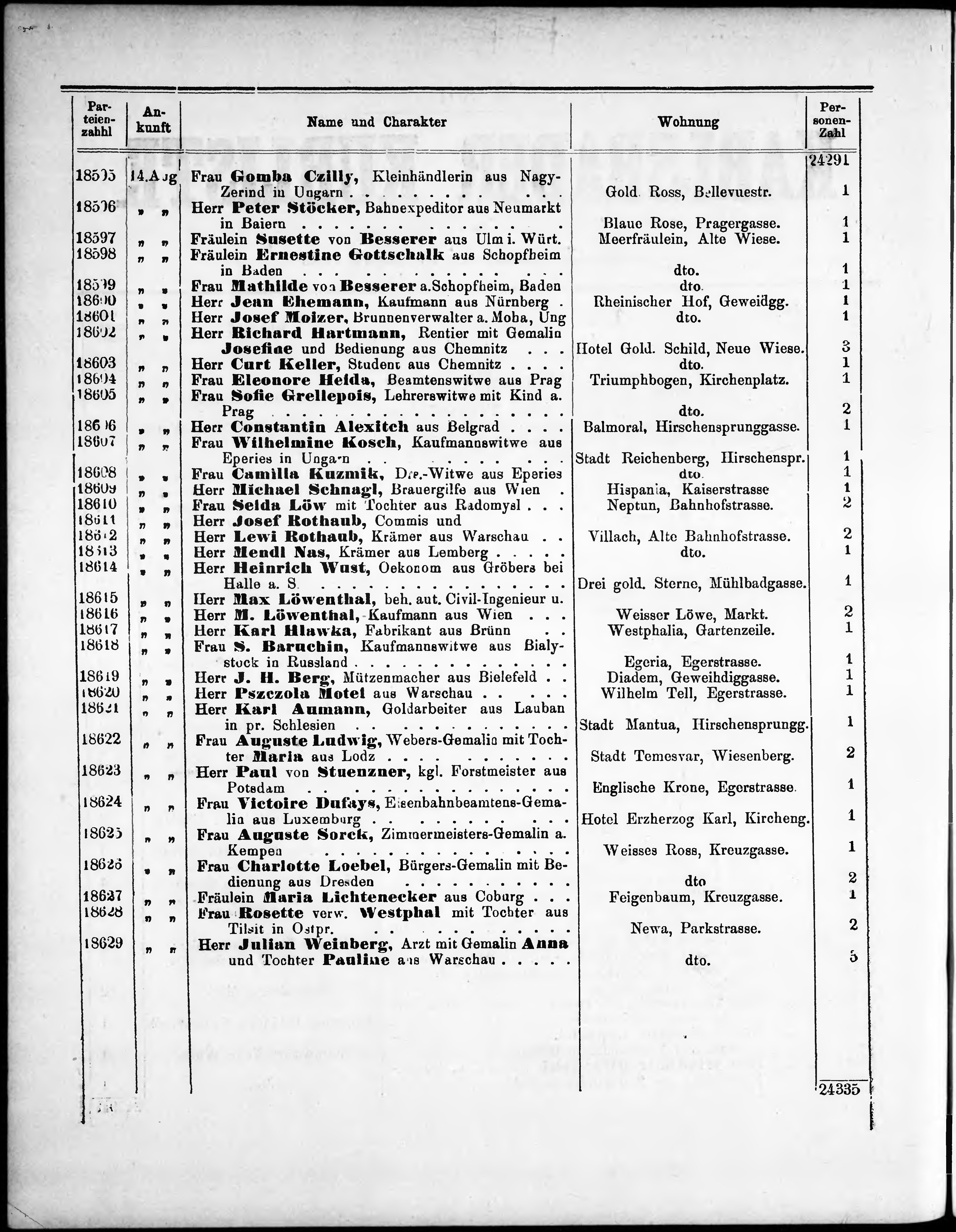 Liste der P.T. Curgäste in Carlsbad ...