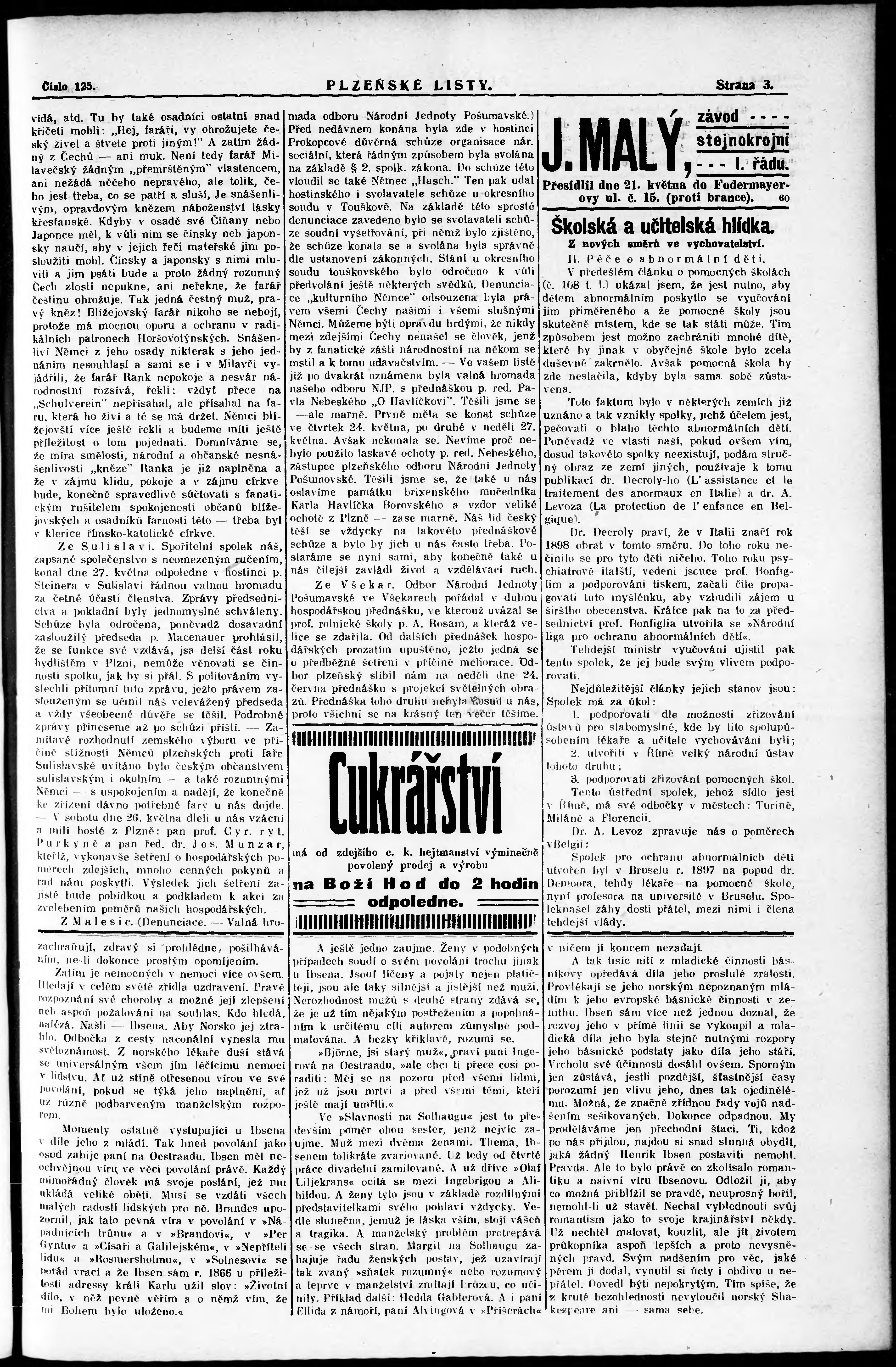* Datum vydání výtisku: 2.6.1906 Číslo výtisku: 125 Poznámky k výtisku: nekonzistence číslování stran;