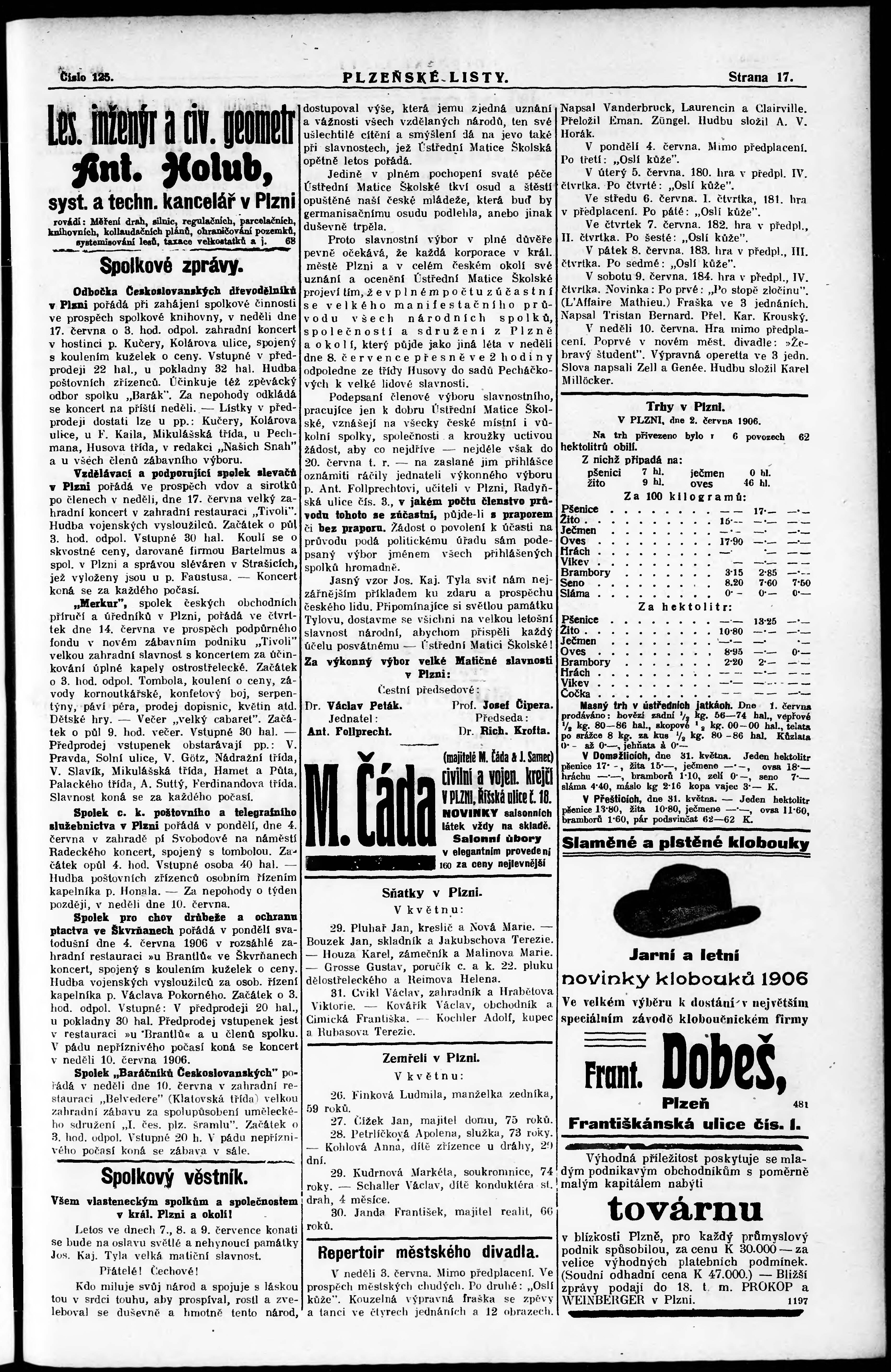 * Datum vydání výtisku: 2.6.1906 Číslo výtisku: 125 Poznámky k výtisku: nekonzistence číslování stran;