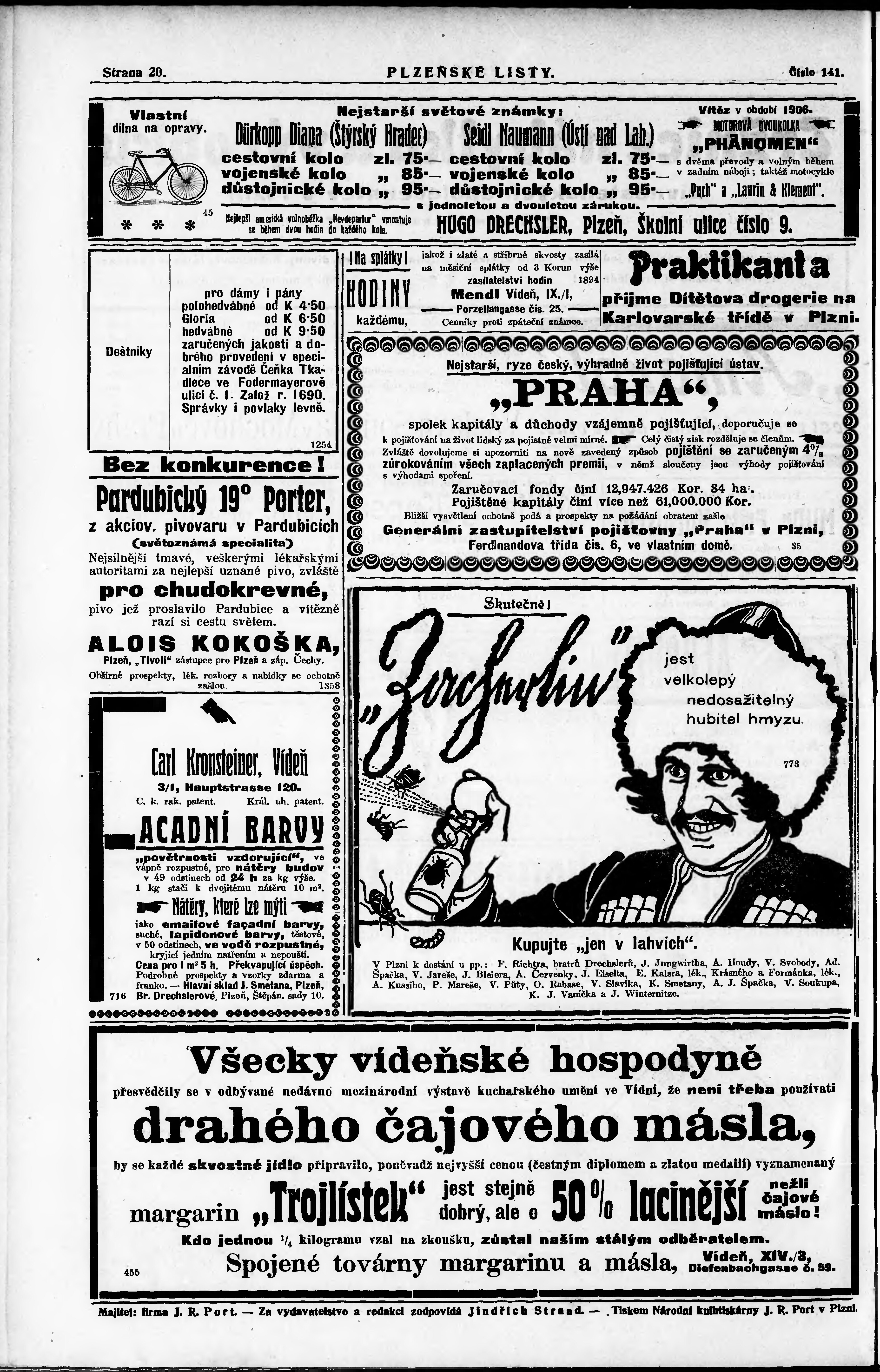 * Datum vydání výtisku: 23.6.1906 Číslo výtisku: 141 Poznámky k výtisku: nekonzistence číslování stran;
