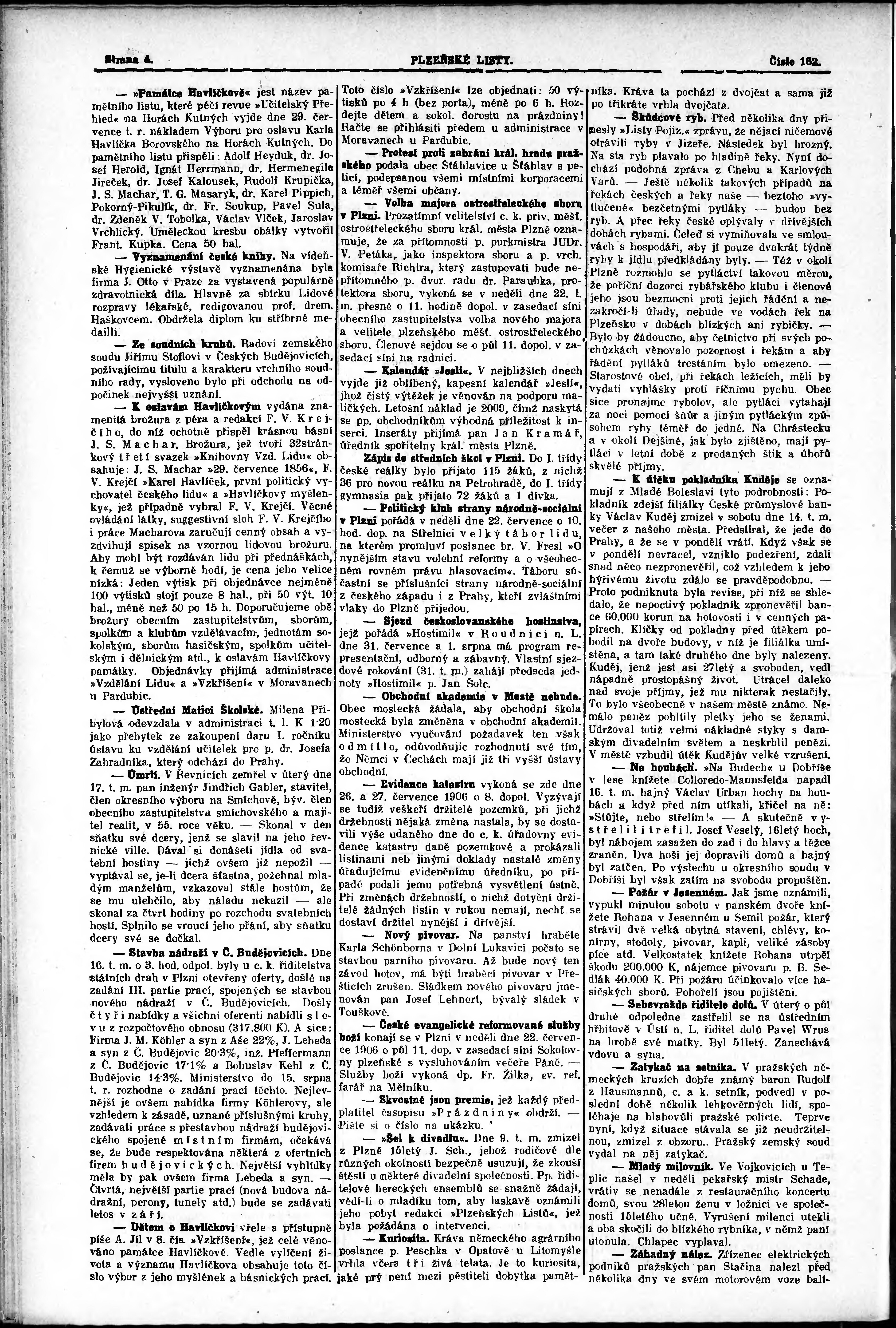 * Datum vydání výtisku: 19.7.1906 Číslo výtisku: 162