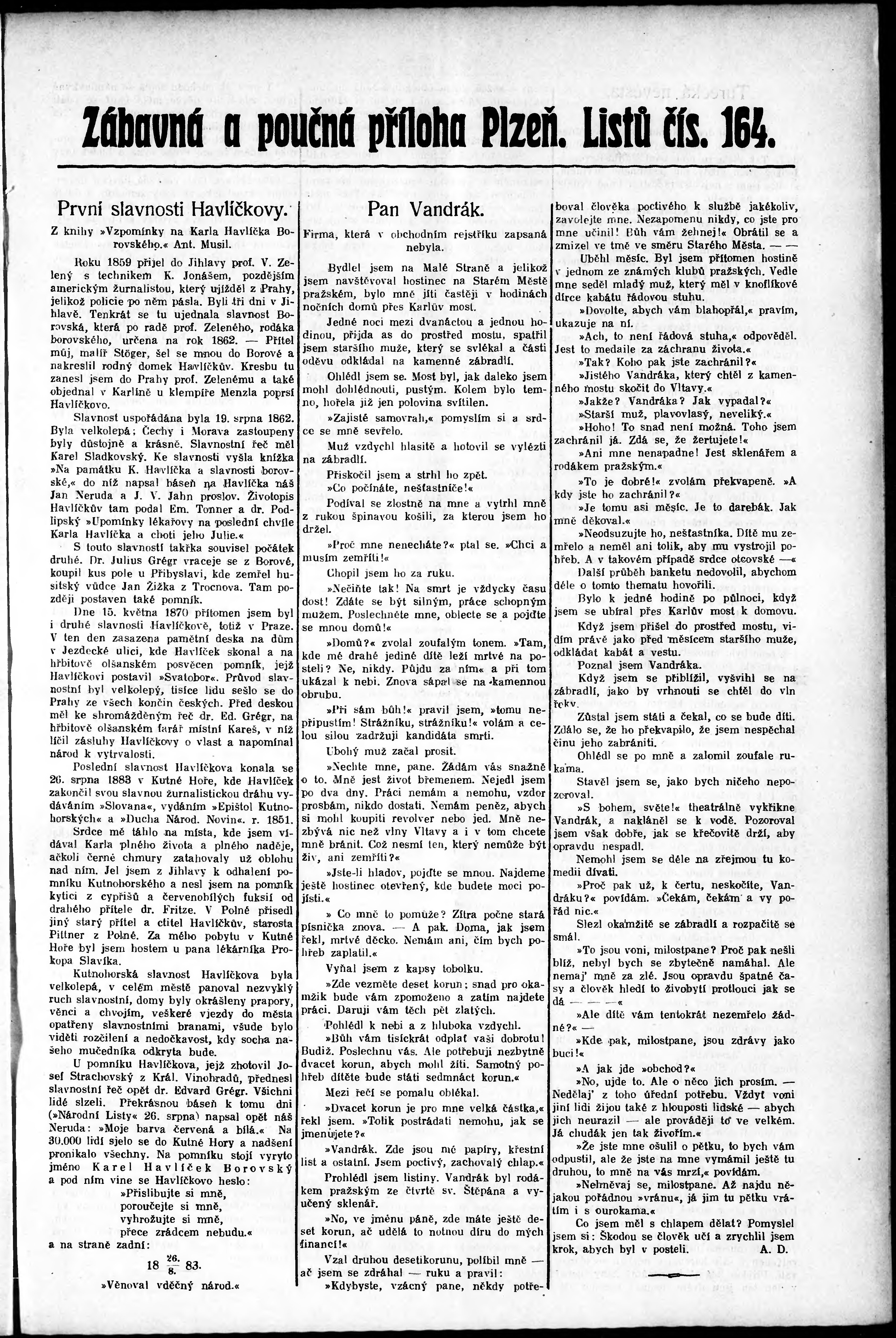 * Datum vydání výtisku: 21.7.1906 Číslo výtisku: 164