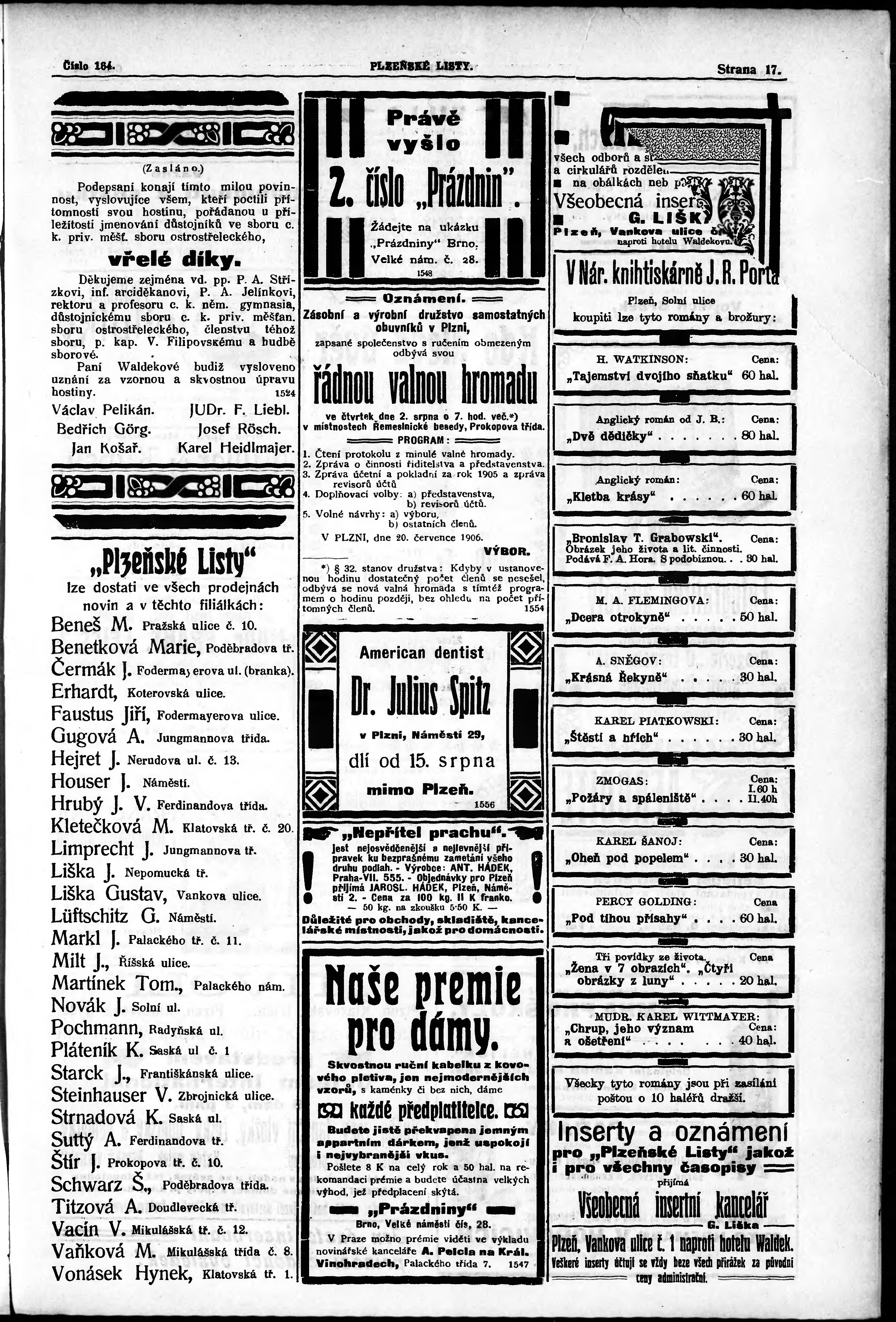 * Datum vydání výtisku: 21.7.1906 Číslo výtisku: 164