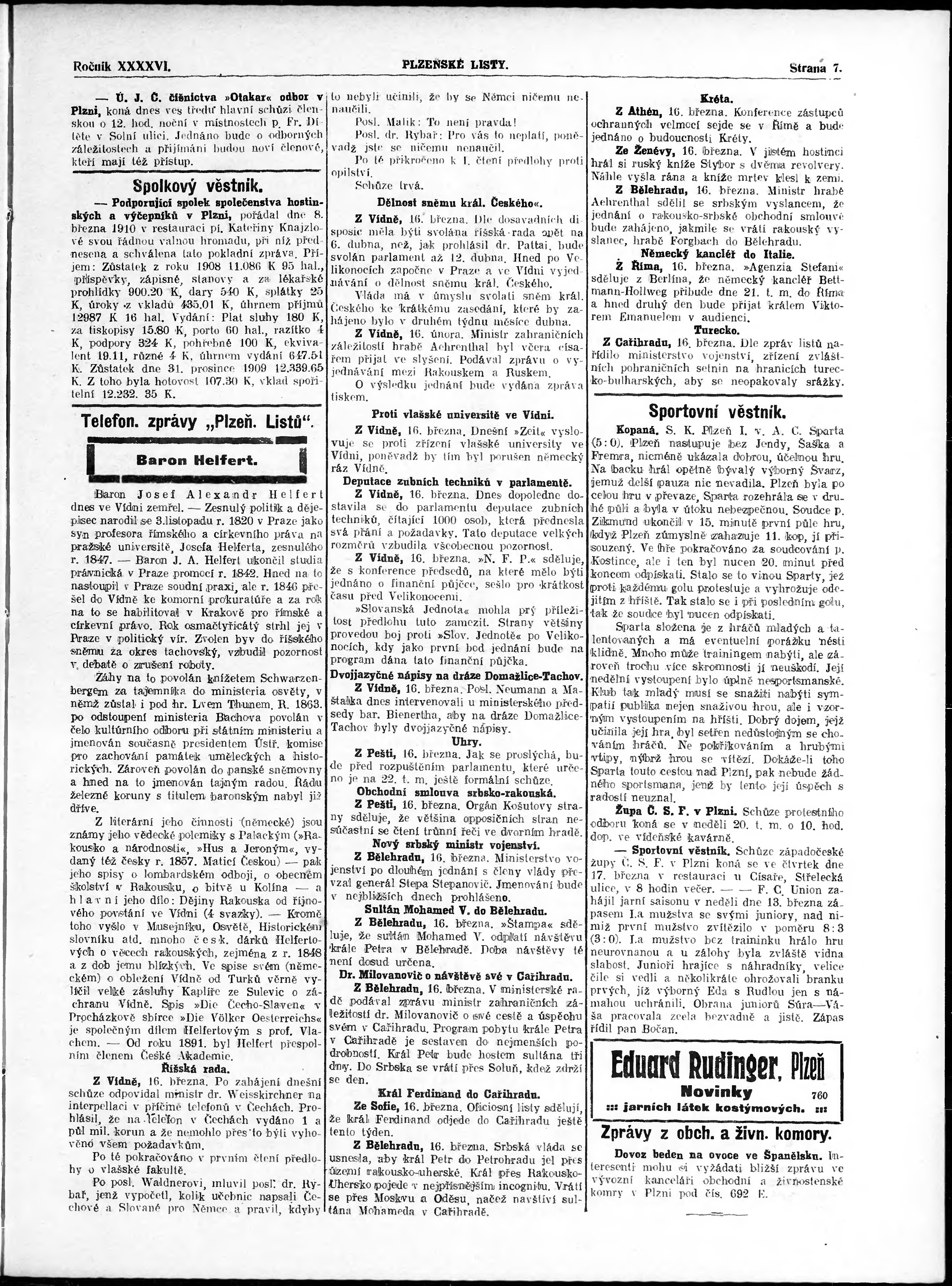 * Datum vydání výtisku: 16.3.1910 Číslo výtisku: 61