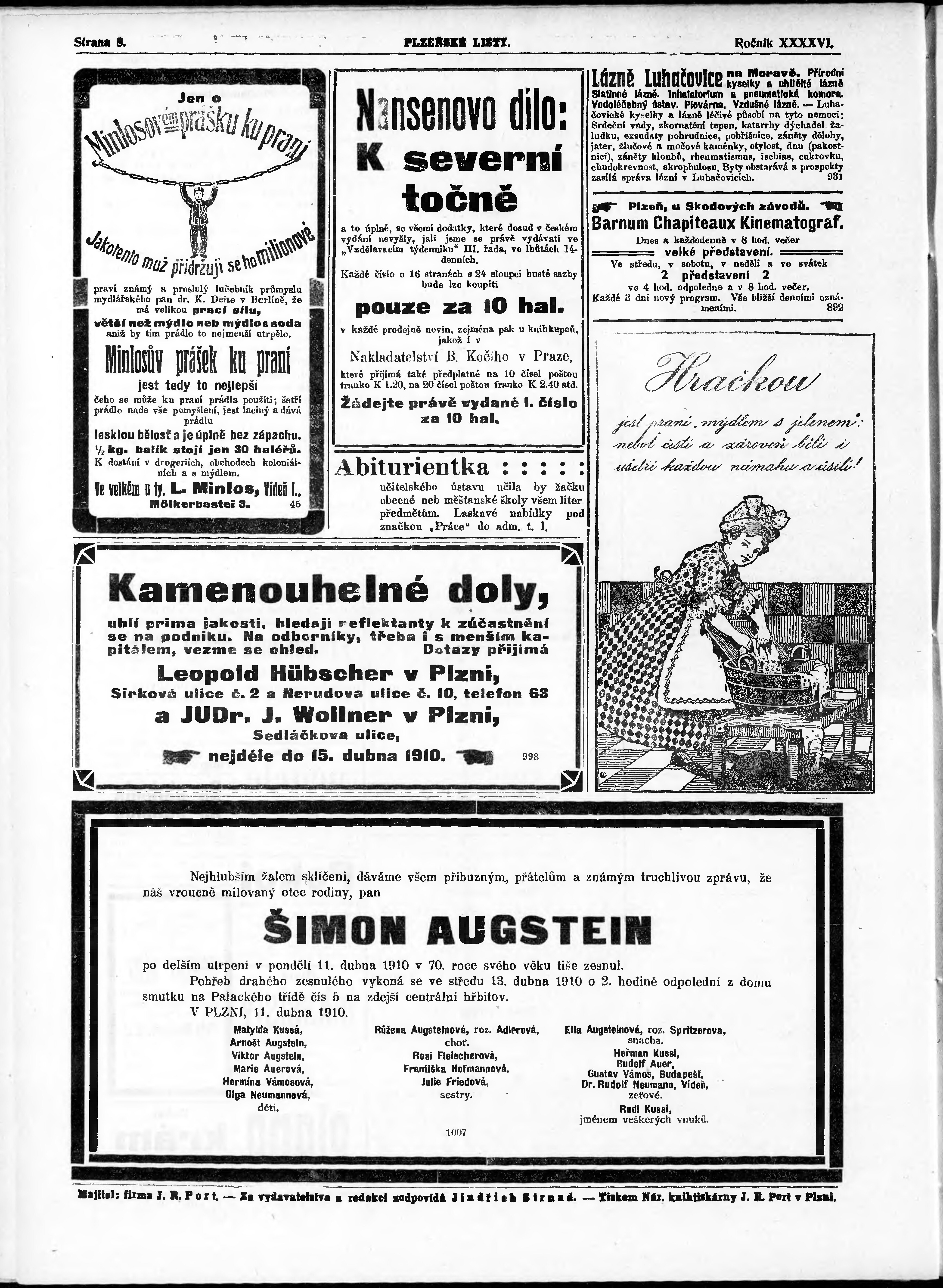 * Datum vydání výtisku: 12.4.1910 Číslo výtisku: 82