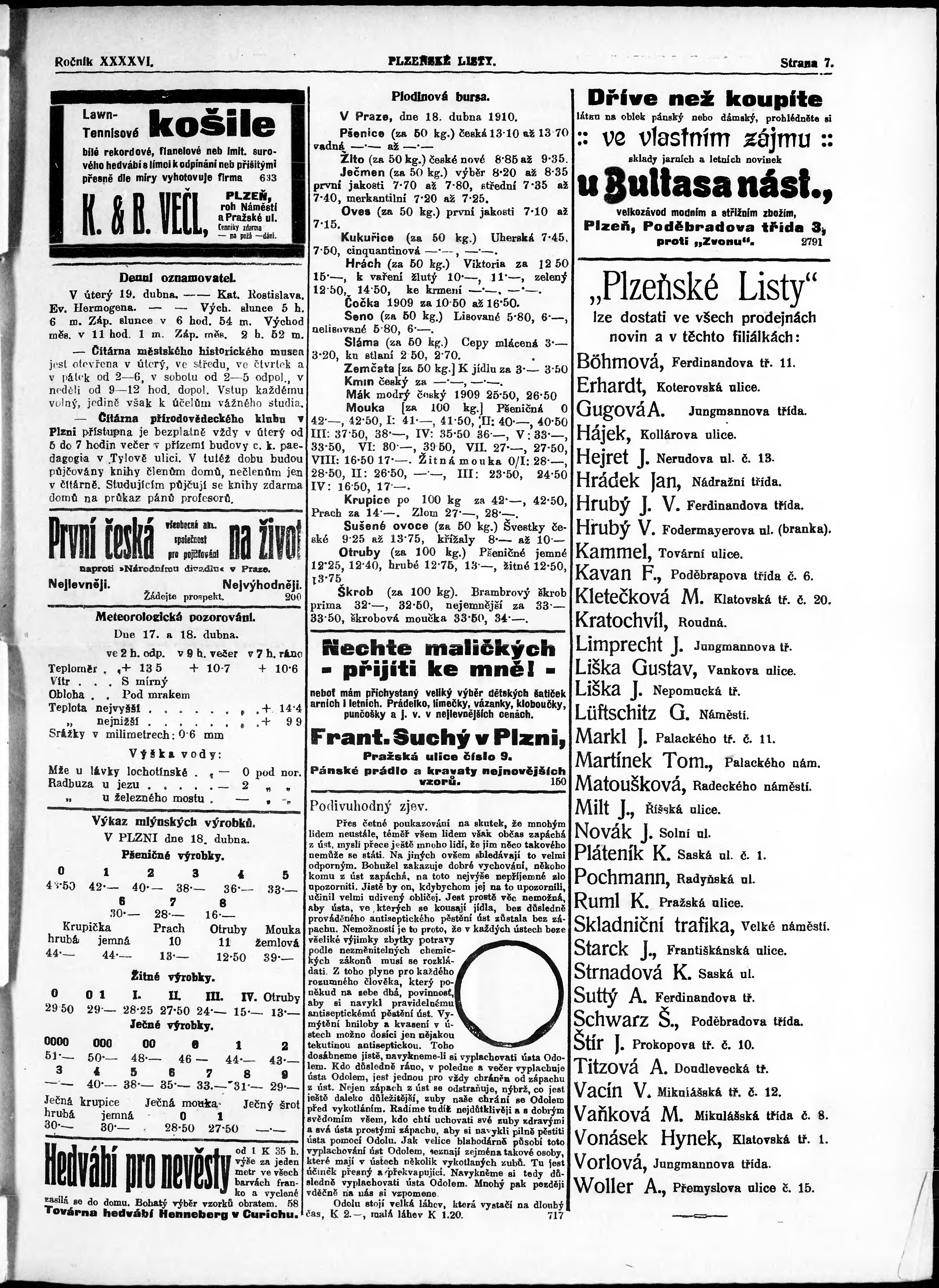 * Datum vydání výtisku: 18.4.1910 Číslo výtisku: 87