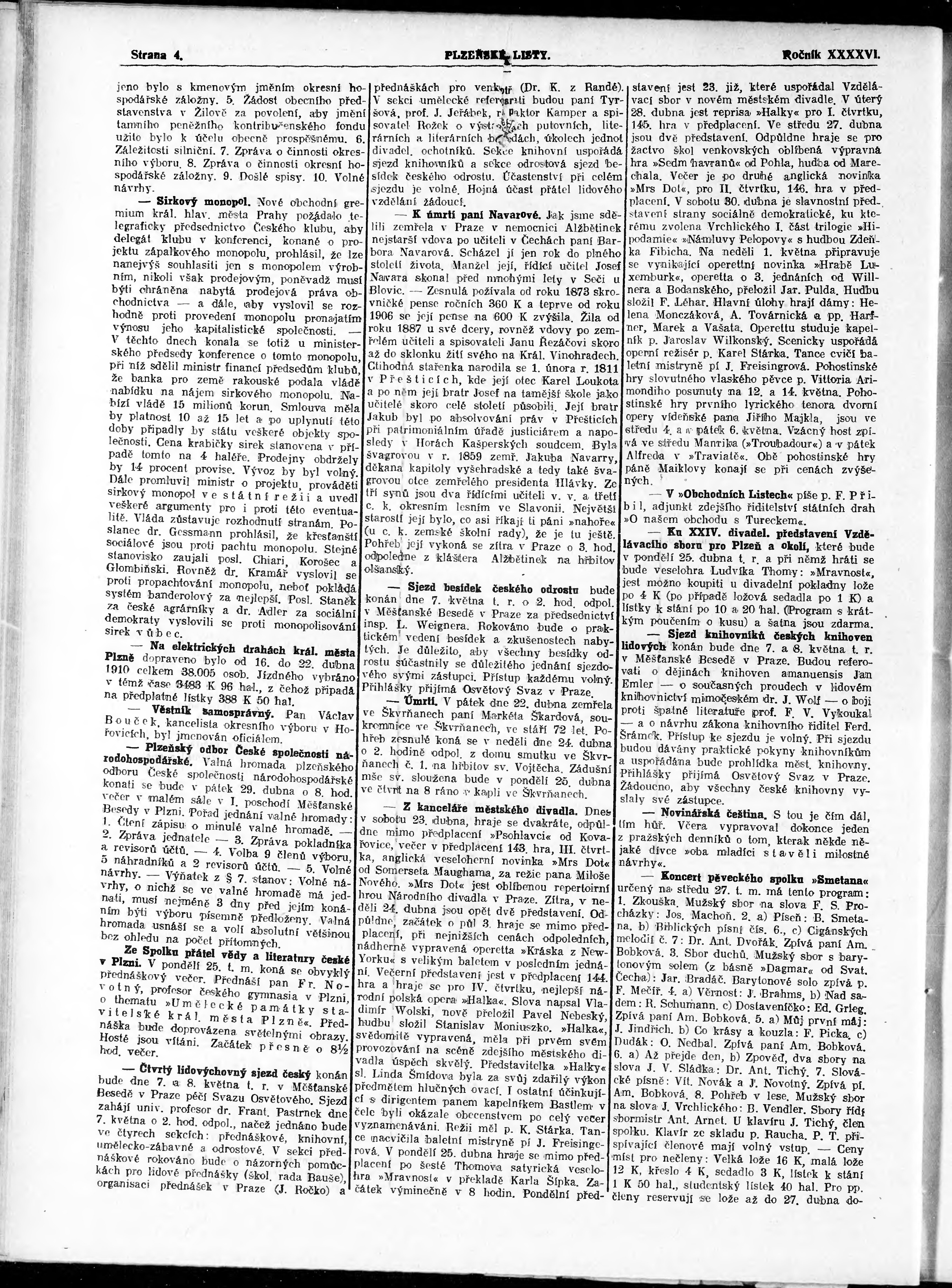 * Datum vydání výtisku: 23.4.1910 Číslo výtisku: 92 Poznámky k výtisku: nekonzistence číslování stran;