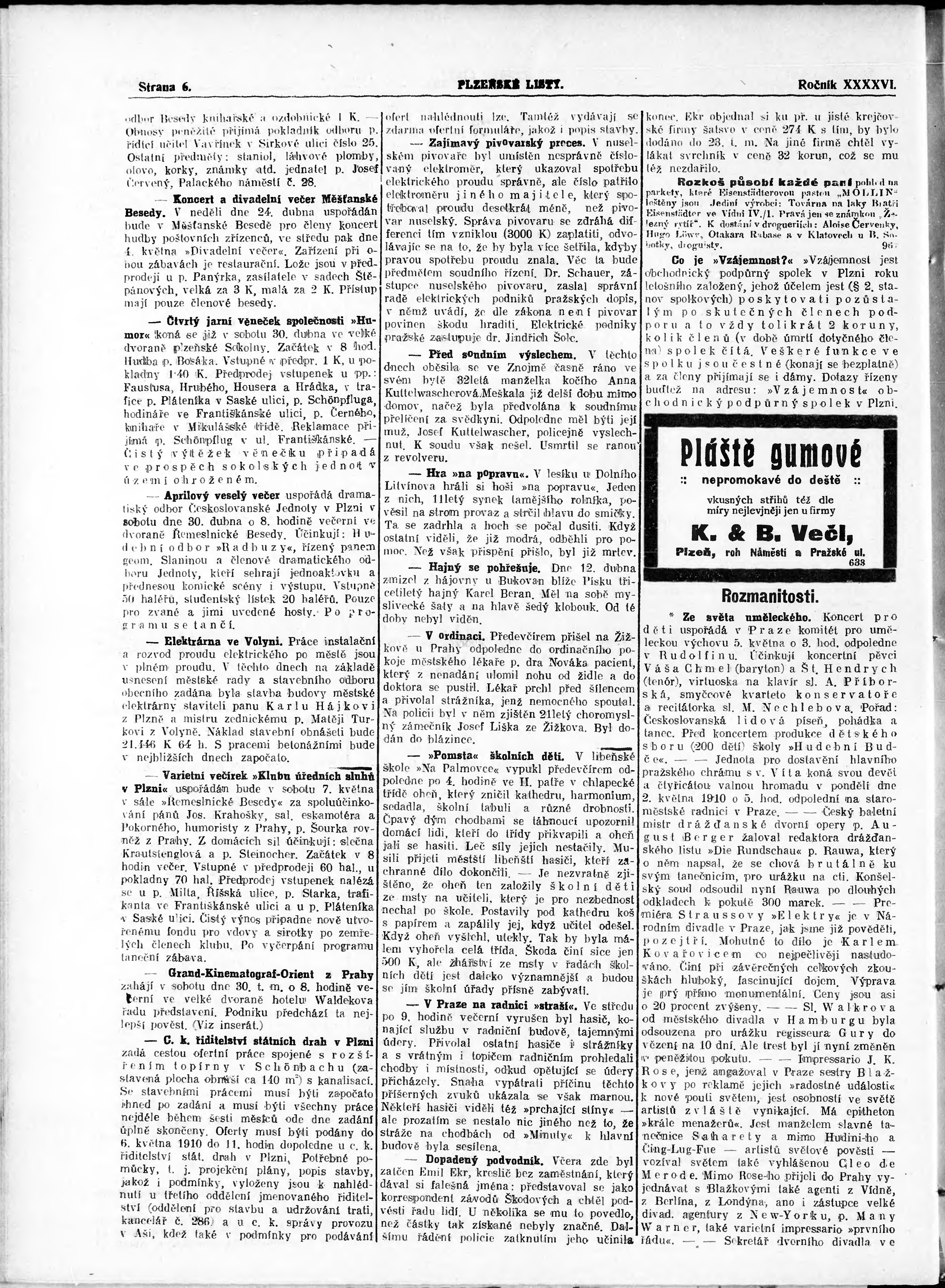 * Datum vydání výtisku: 23.4.1910 Číslo výtisku: 92 Poznámky k výtisku: nekonzistence číslování stran;