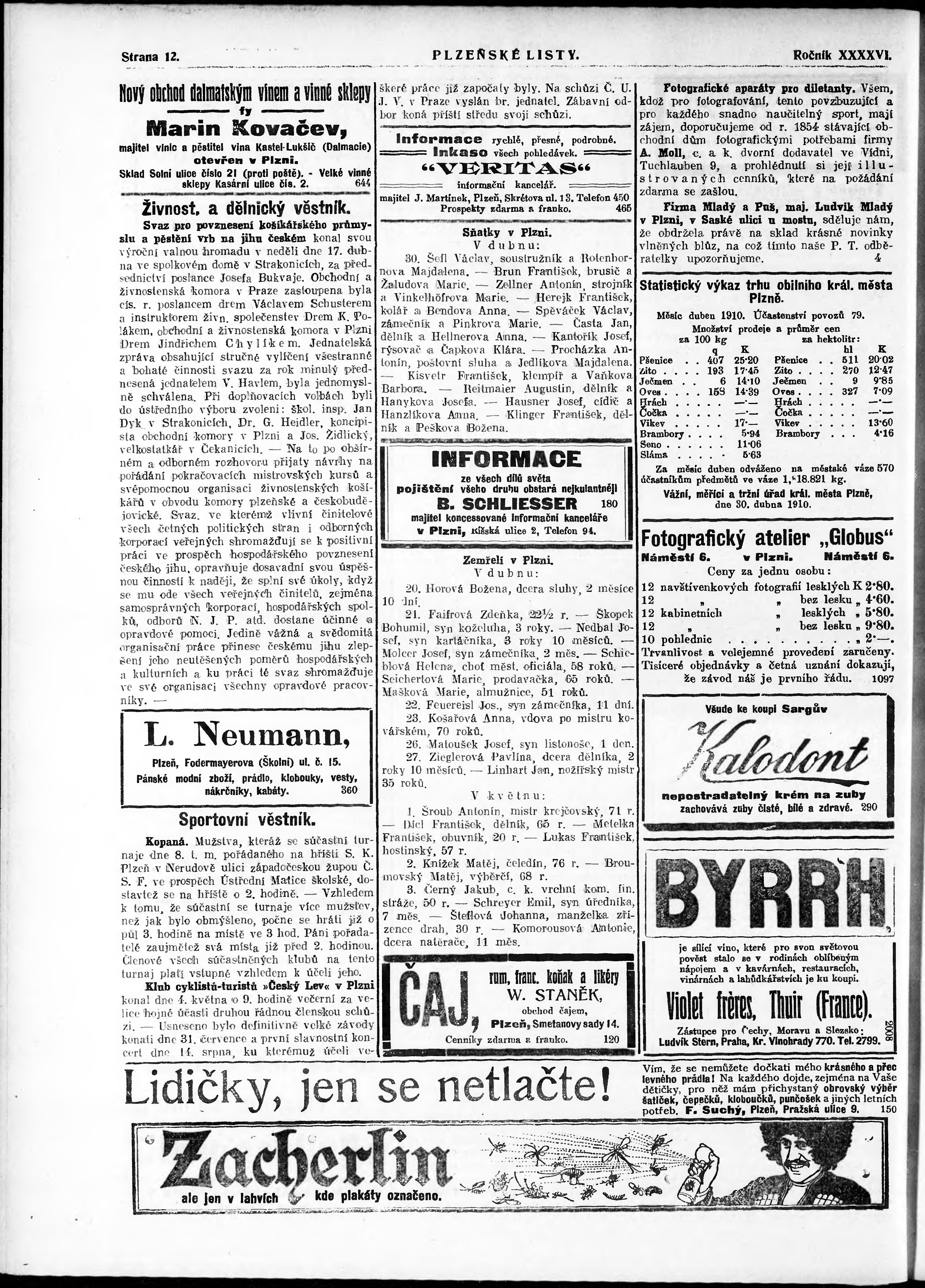 * Datum vydání výtisku: 2.5.1910 Číslo výtisku: 99 Poznámky k výtisku: nekonzistence číslování stran;