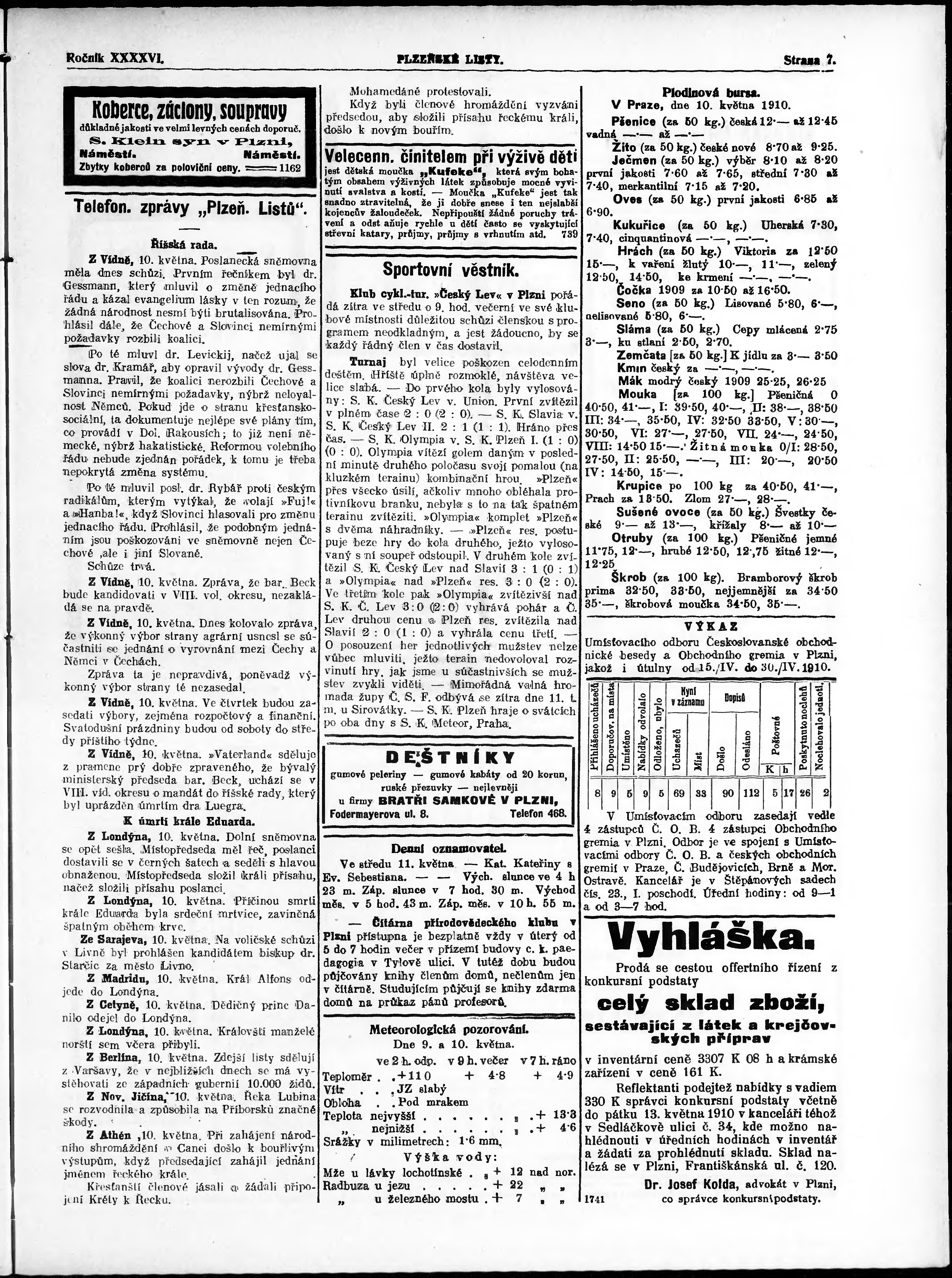 * Datum vydání výtisku: 10.5.1910 Číslo výtisku: 105