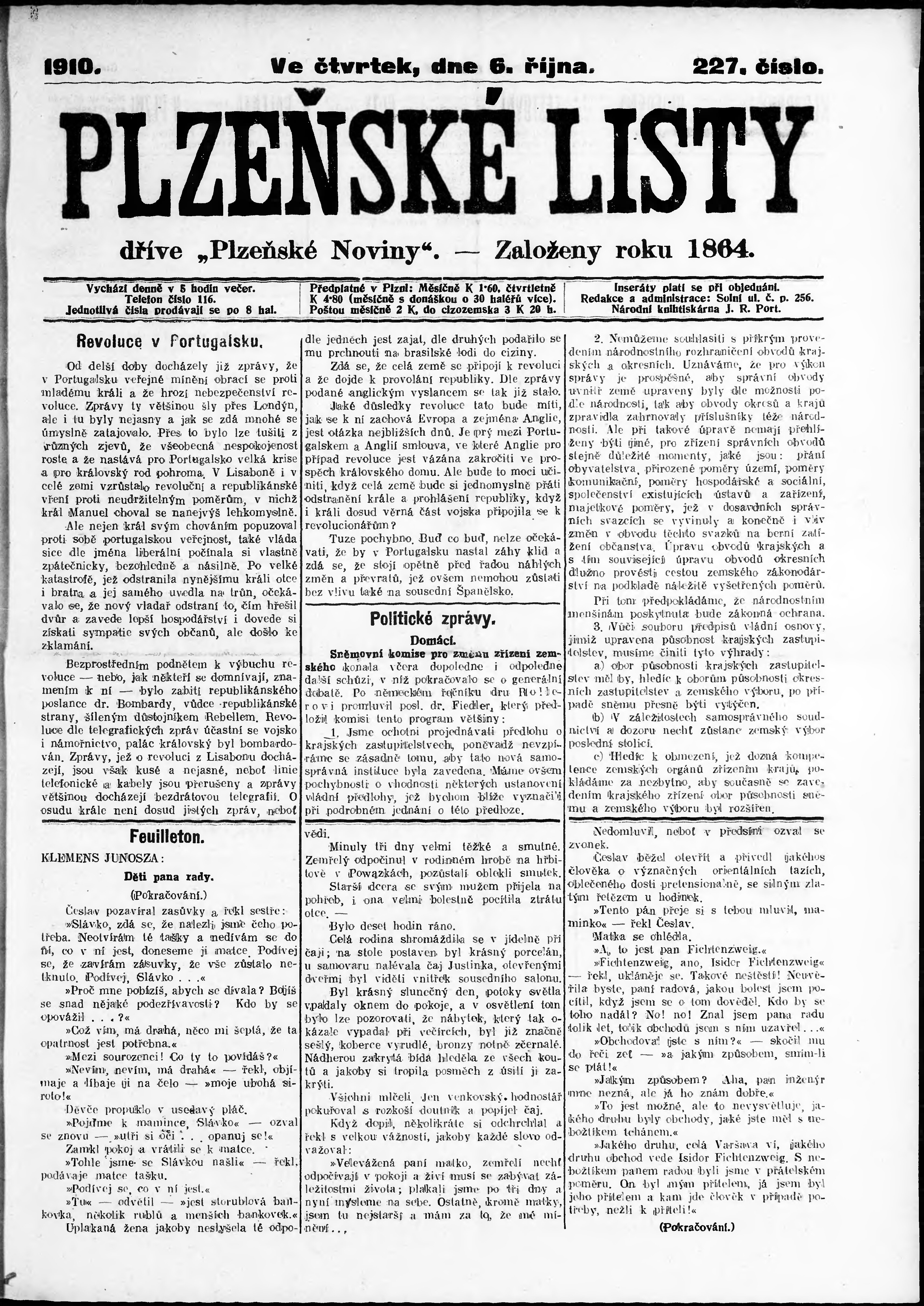 * Datum vydání výtisku: 6.10.1910 Číslo výtisku: 227