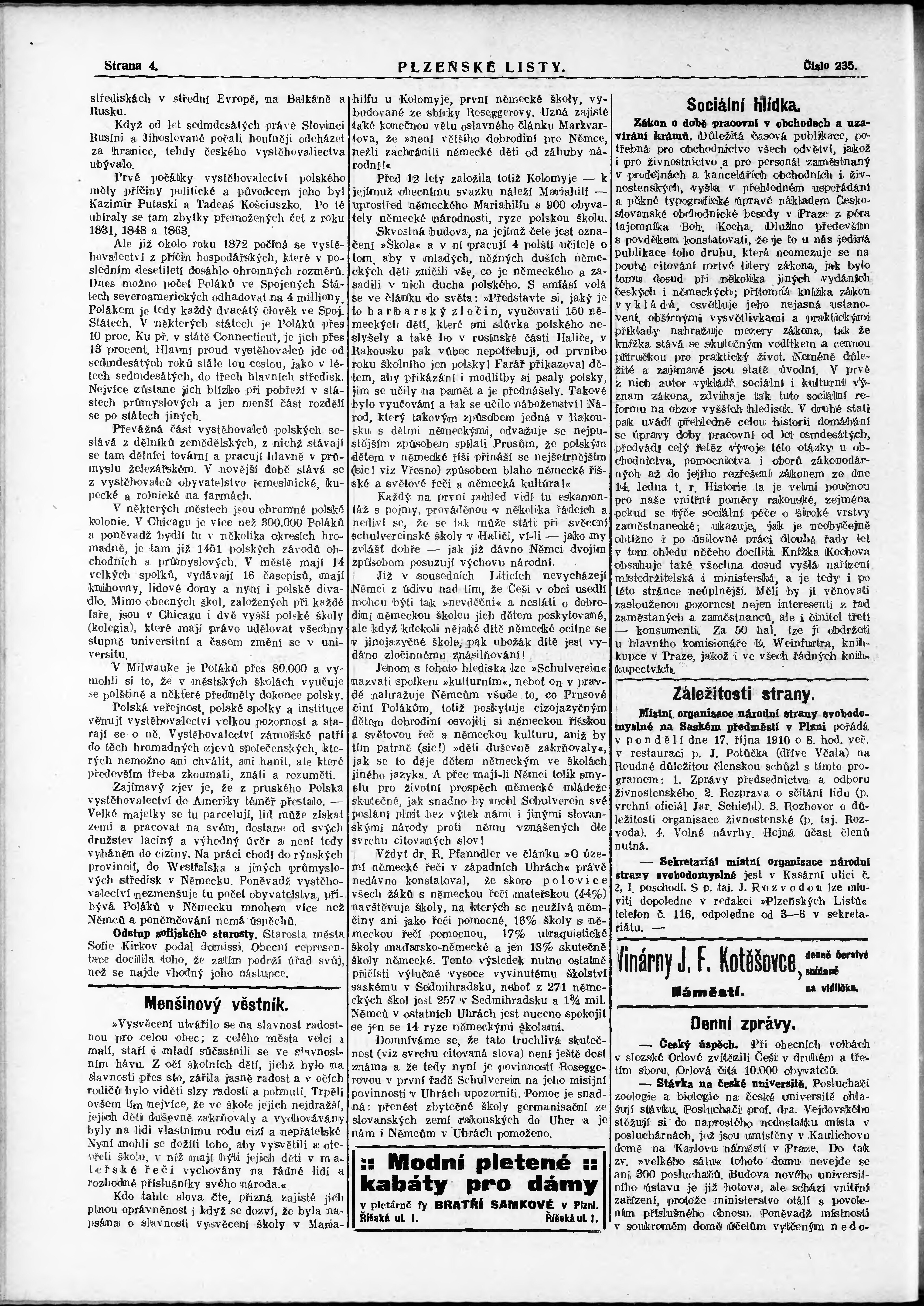 * Datum vydání výtisku: 15.10.1910 Číslo výtisku: 235 Poznámky k výtisku: nekonzistence číslování stran;