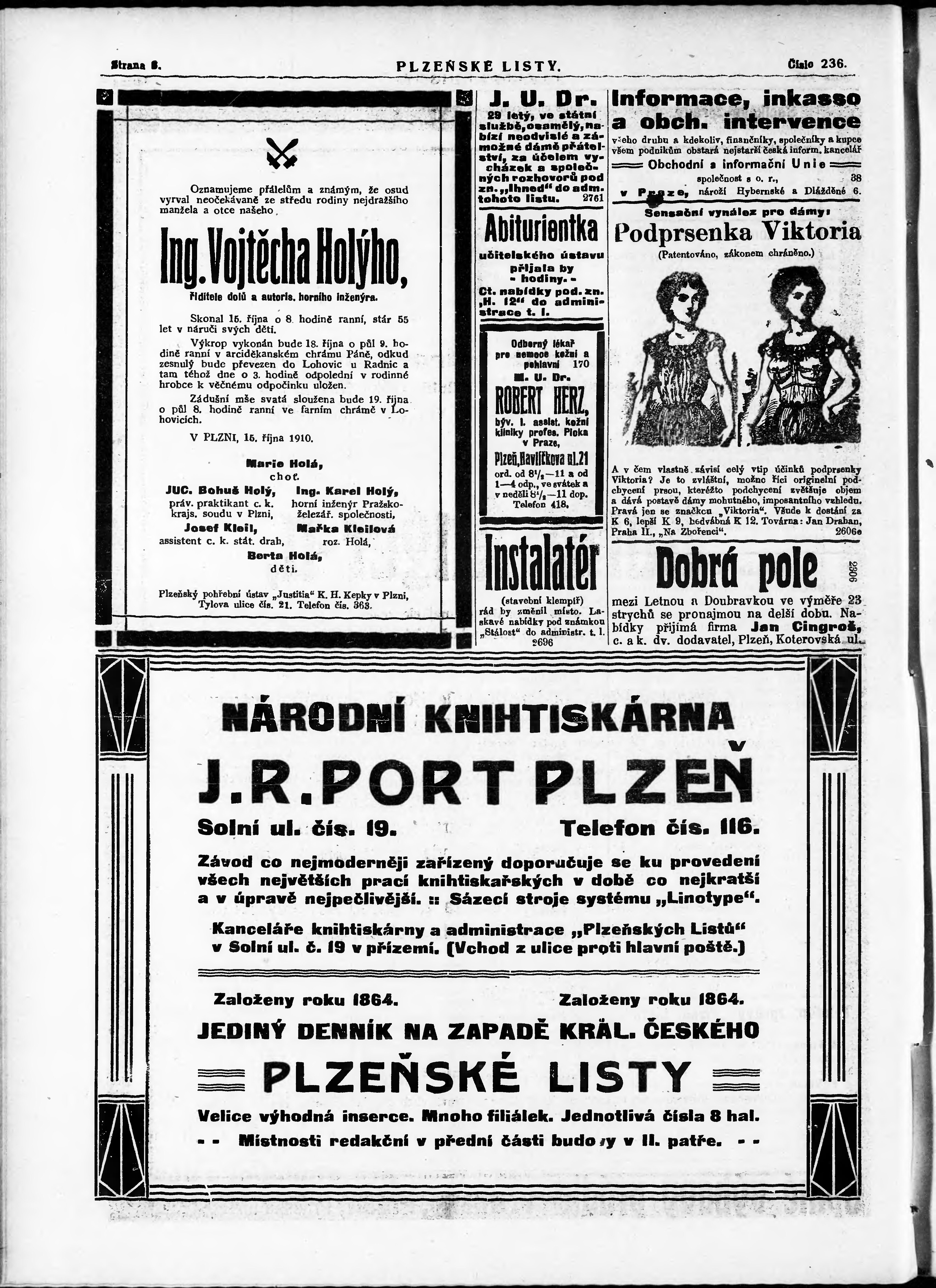 * Datum vydání výtisku: 17.10.1910 Číslo výtisku: 236 Poznámky k výtisku: nekonzistence číslování stran;