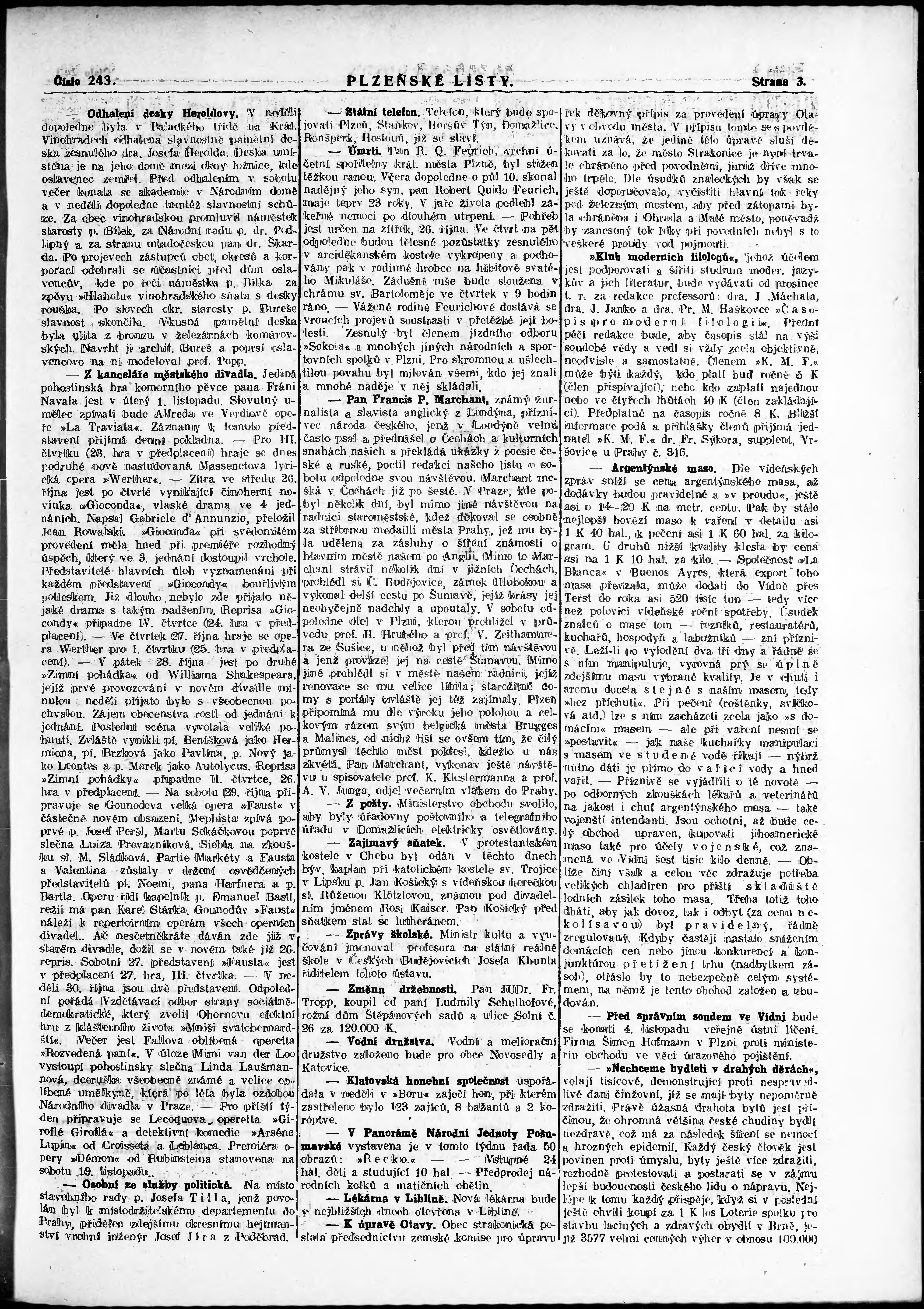 * Datum vydání výtisku: 25.10.1910 Číslo výtisku: 243