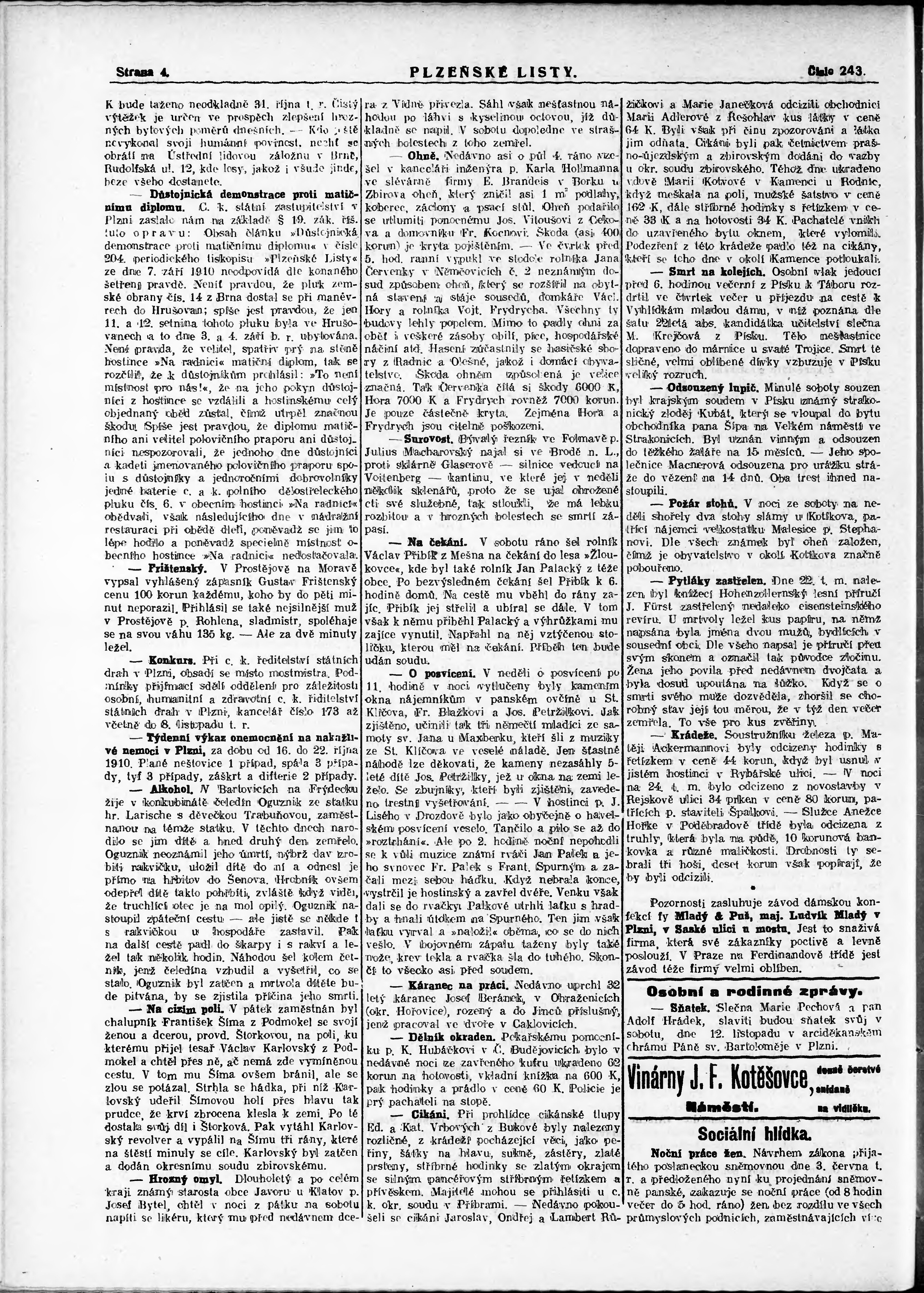 * Datum vydání výtisku: 25.10.1910 Číslo výtisku: 243