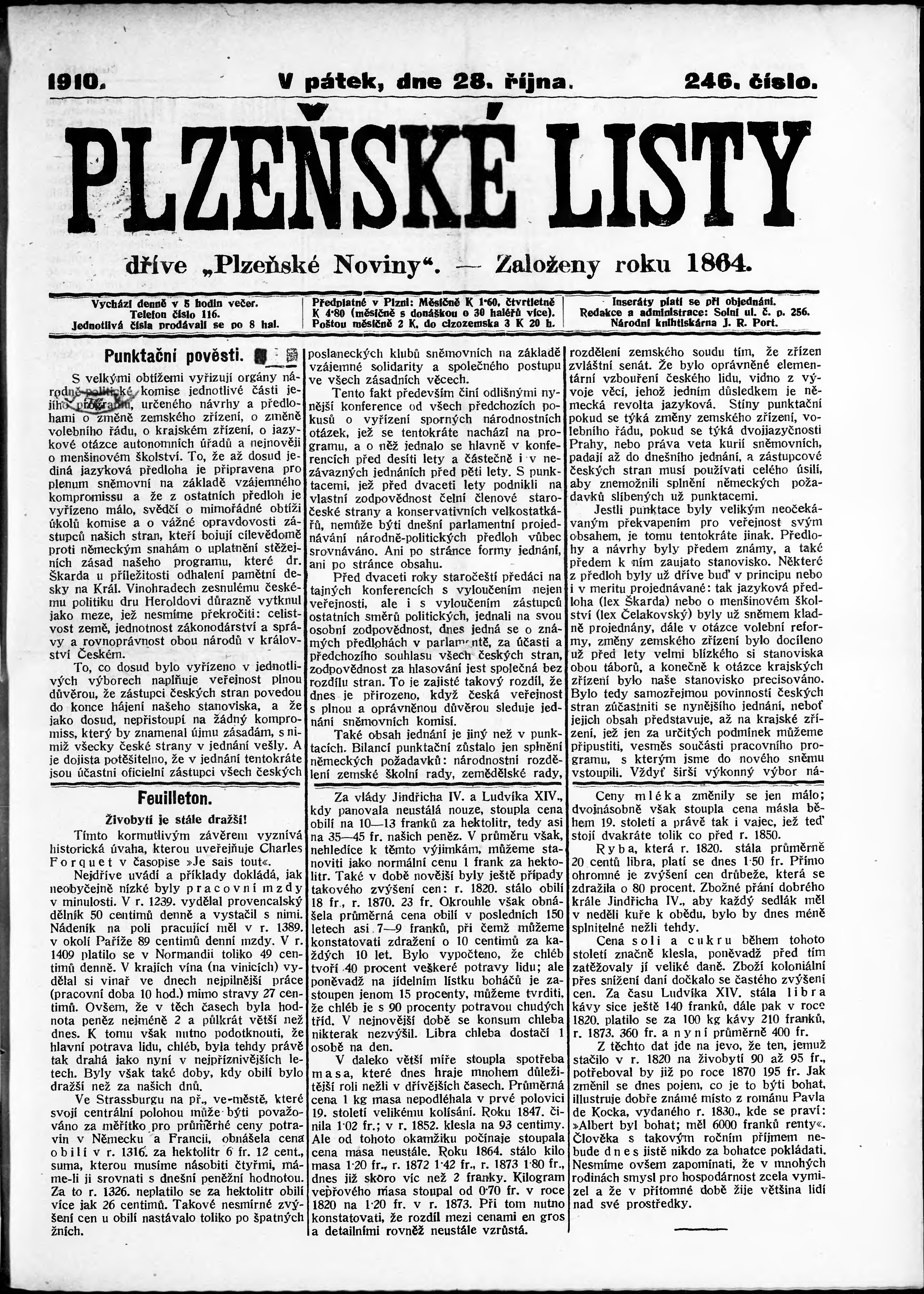 * Datum vydání výtisku: 28.10.1910 Číslo výtisku: 246