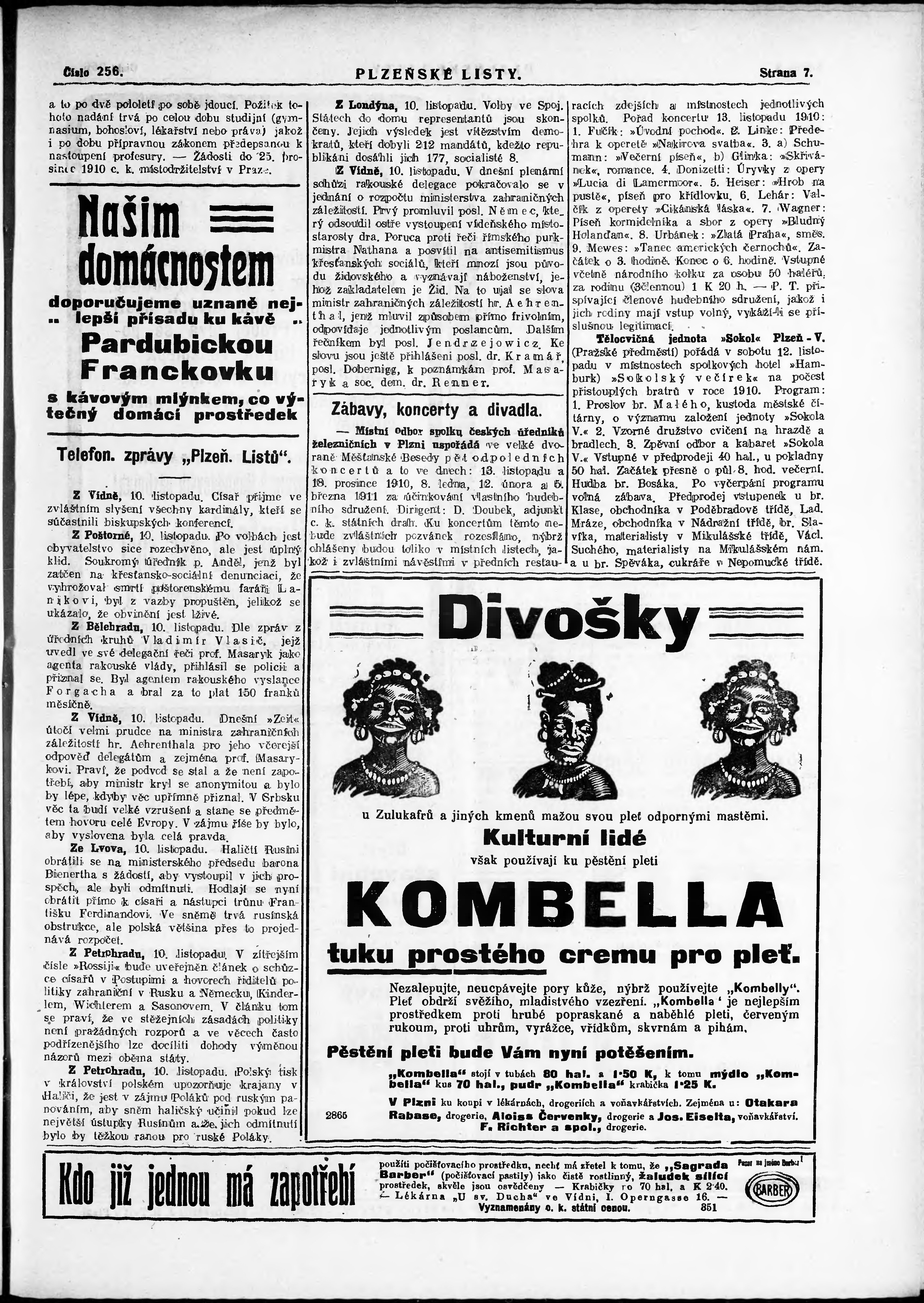 * Datum vydání výtisku: 10.11.1910 Číslo výtisku: 256