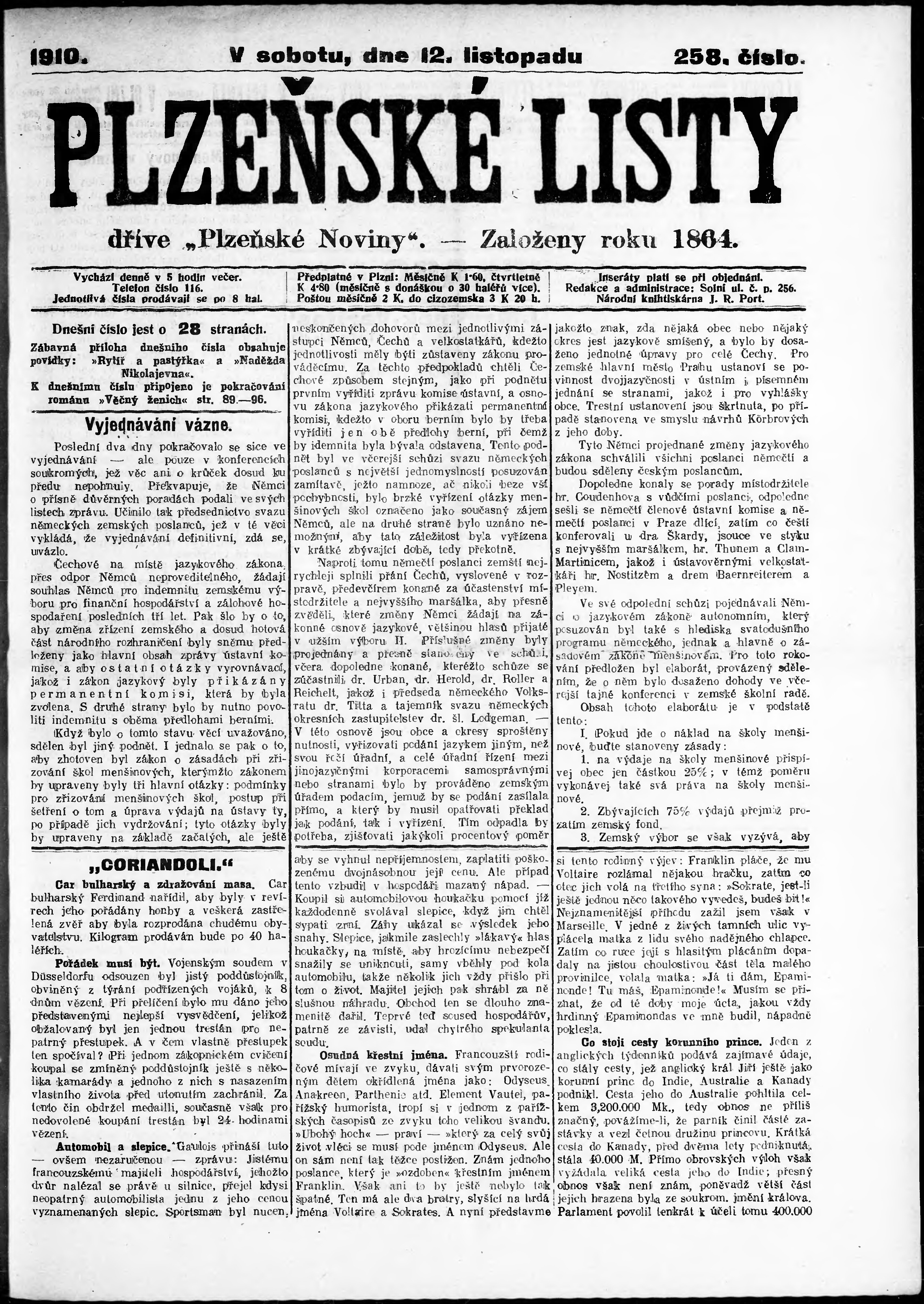 * Datum vydání výtisku: 12.11.1910 Číslo výtisku: 258 Poznámky k výtisku: nekonzistence číslování stran;
