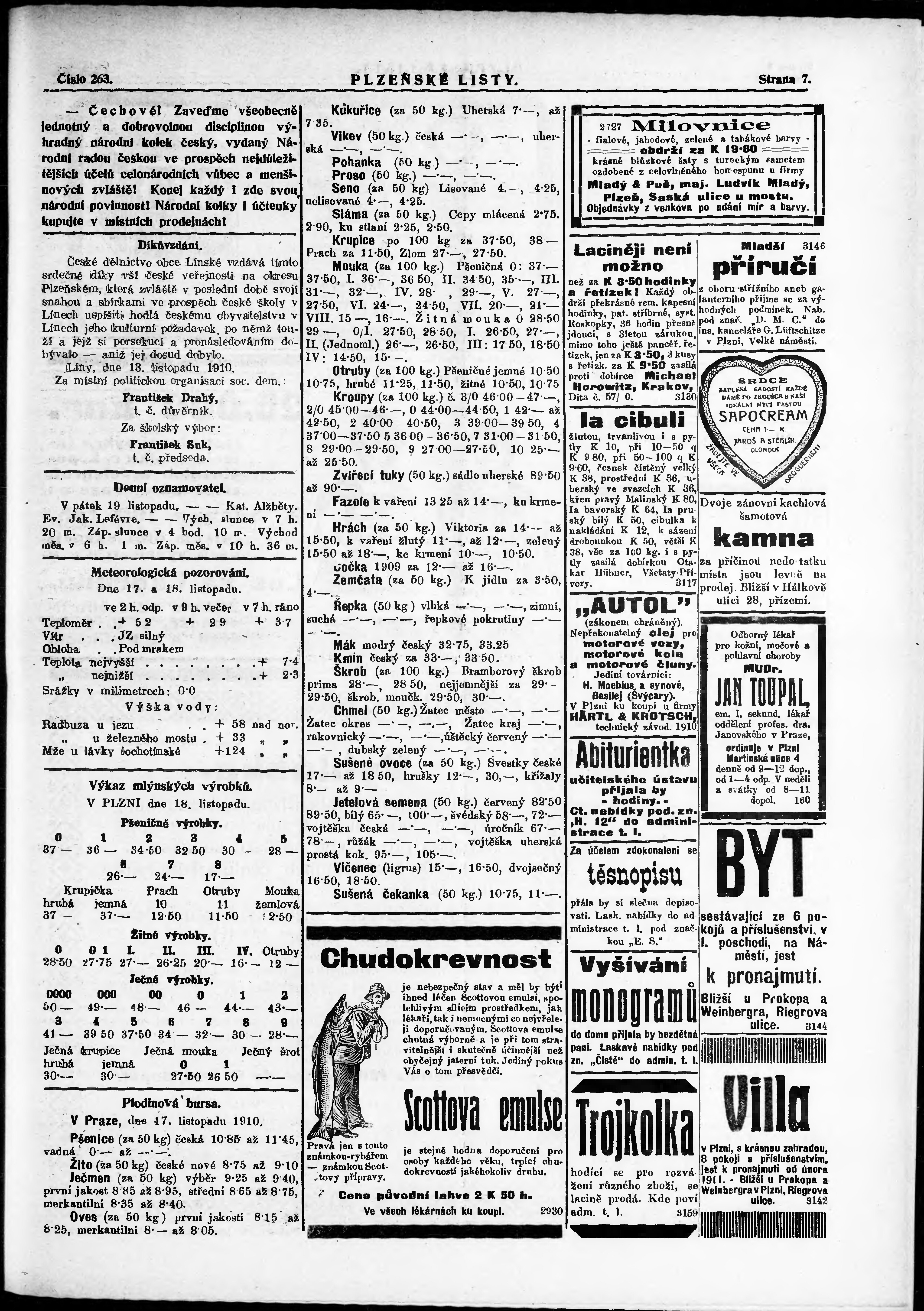 * Datum vydání výtisku: 18.11.1910 Číslo výtisku: 263