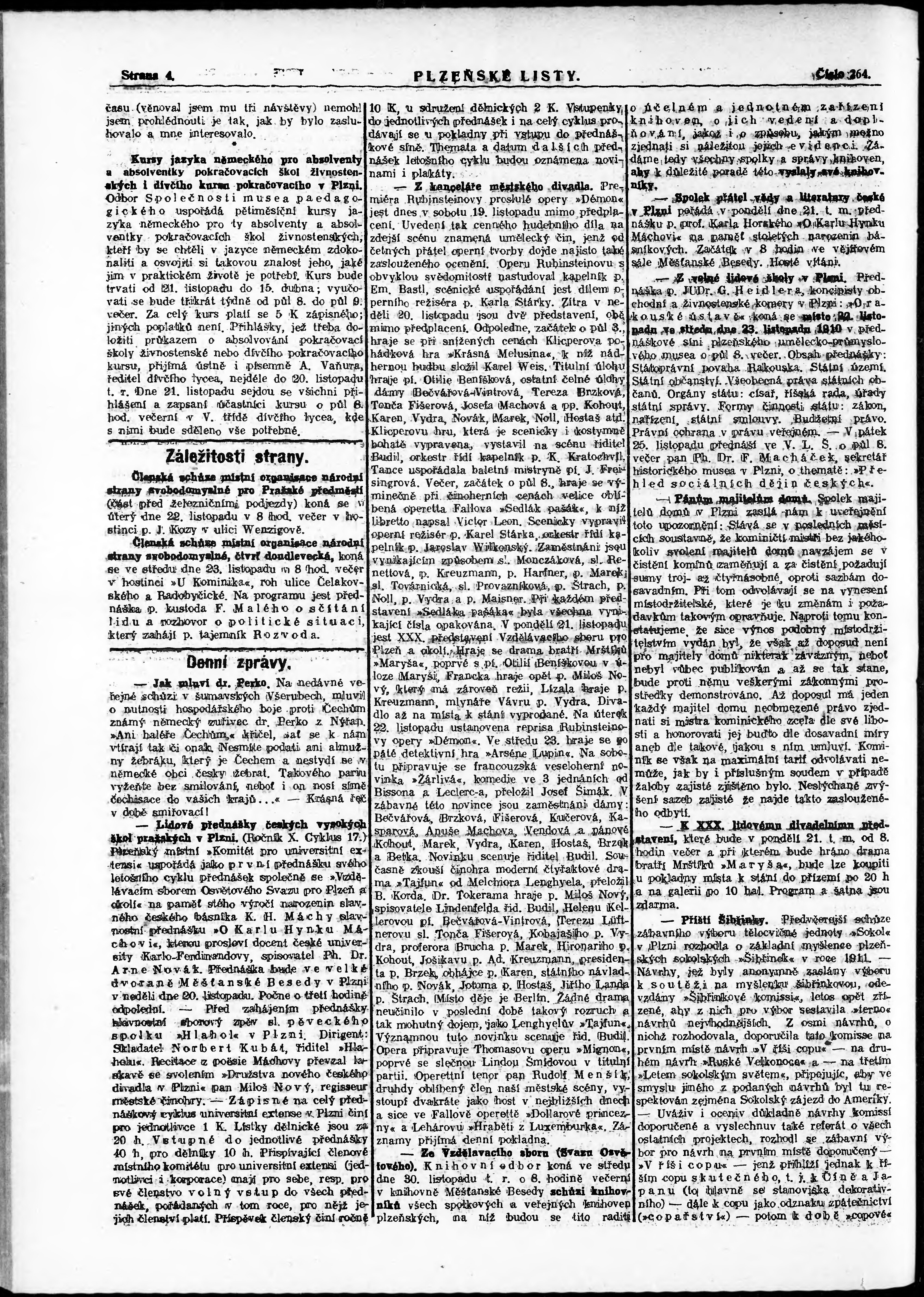 * Datum vydání výtisku: 19.11.1910 Číslo výtisku: 264 Poznámky k výtisku: nekonzistence číslování stran;