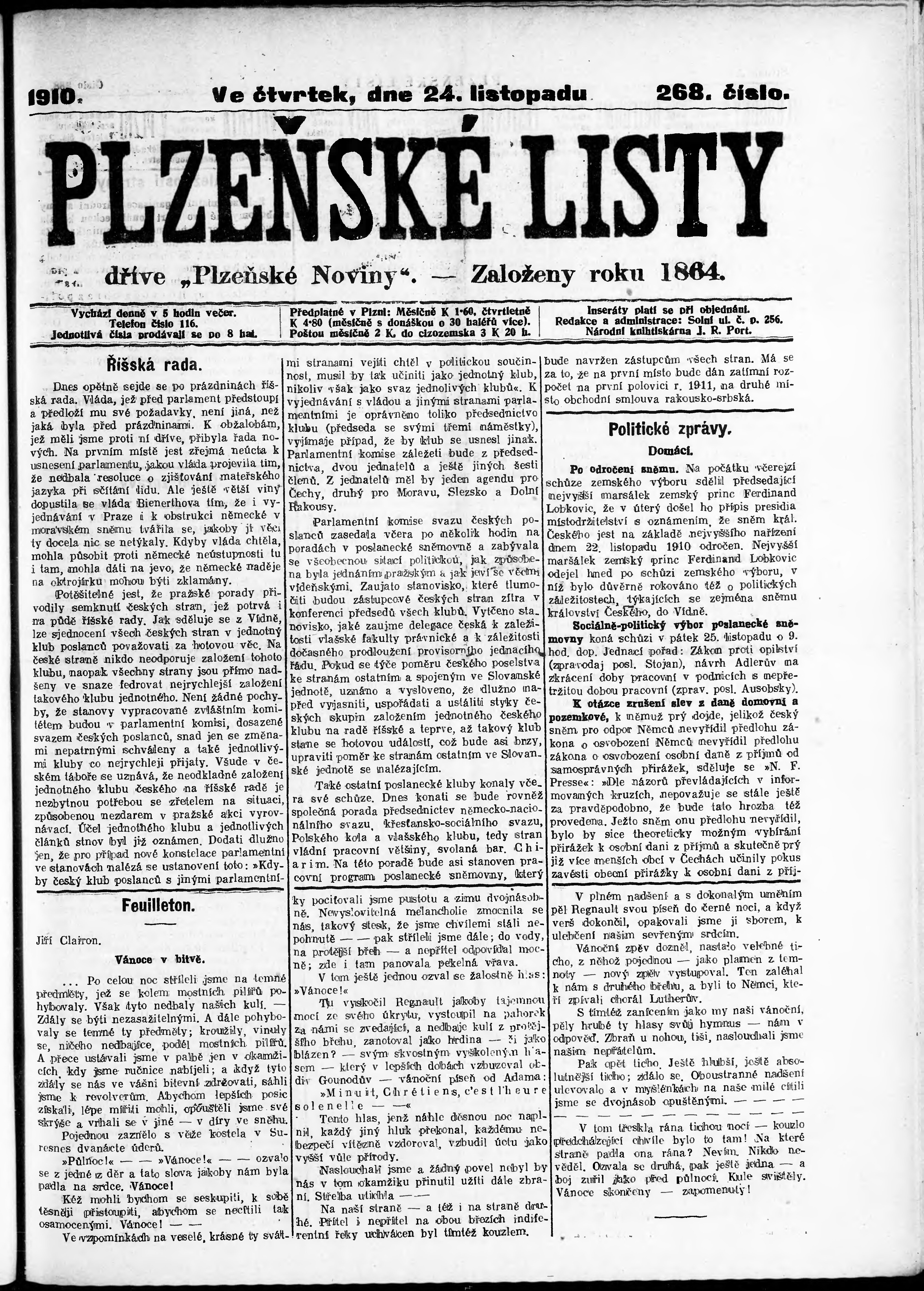 * Datum vydání výtisku: 24.11.1910 Číslo výtisku: 268
