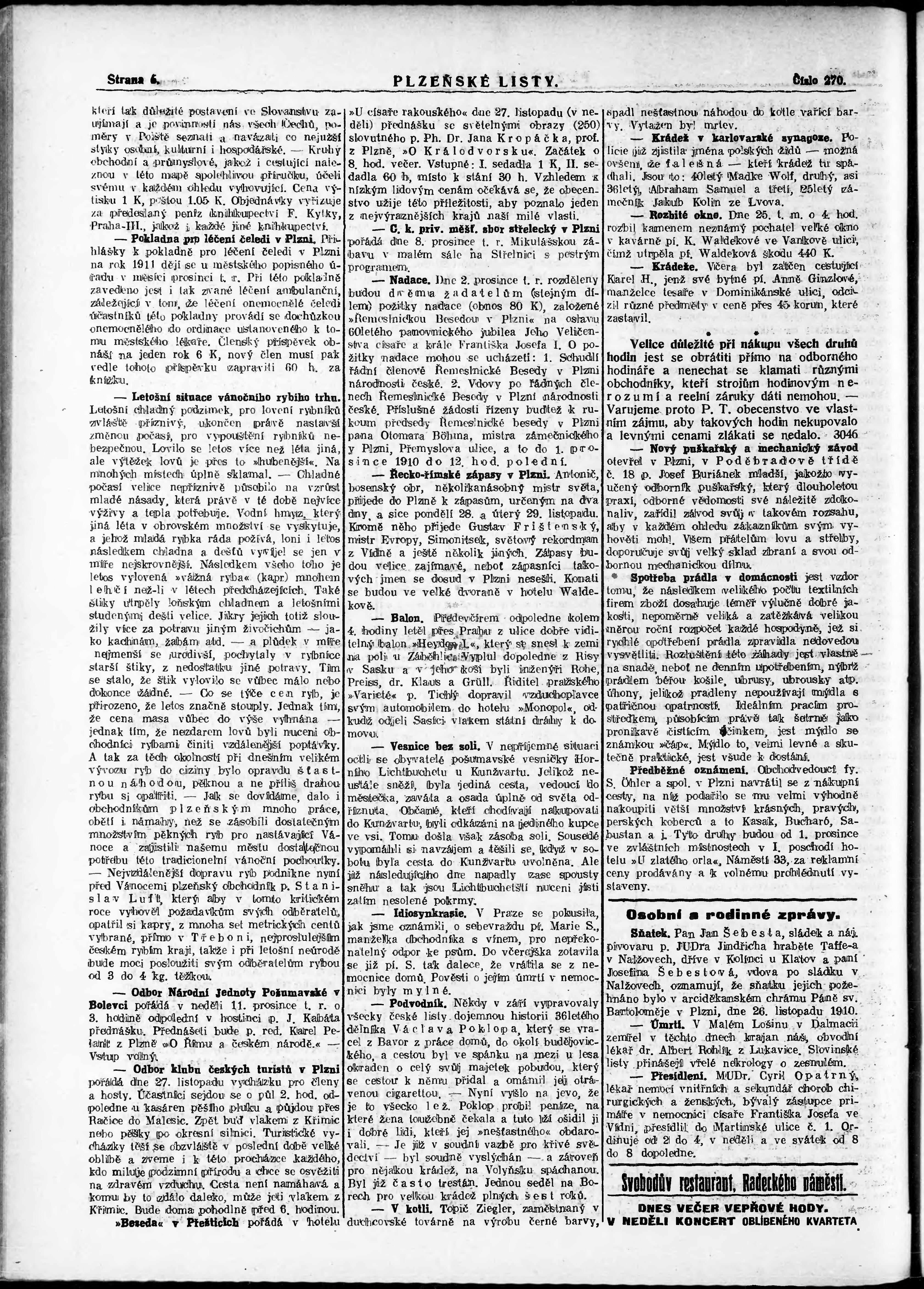* Datum vydání výtisku: 26.11.1910 Číslo výtisku: 270 Poznámky k výtisku: nekonzistence číslování stran;
