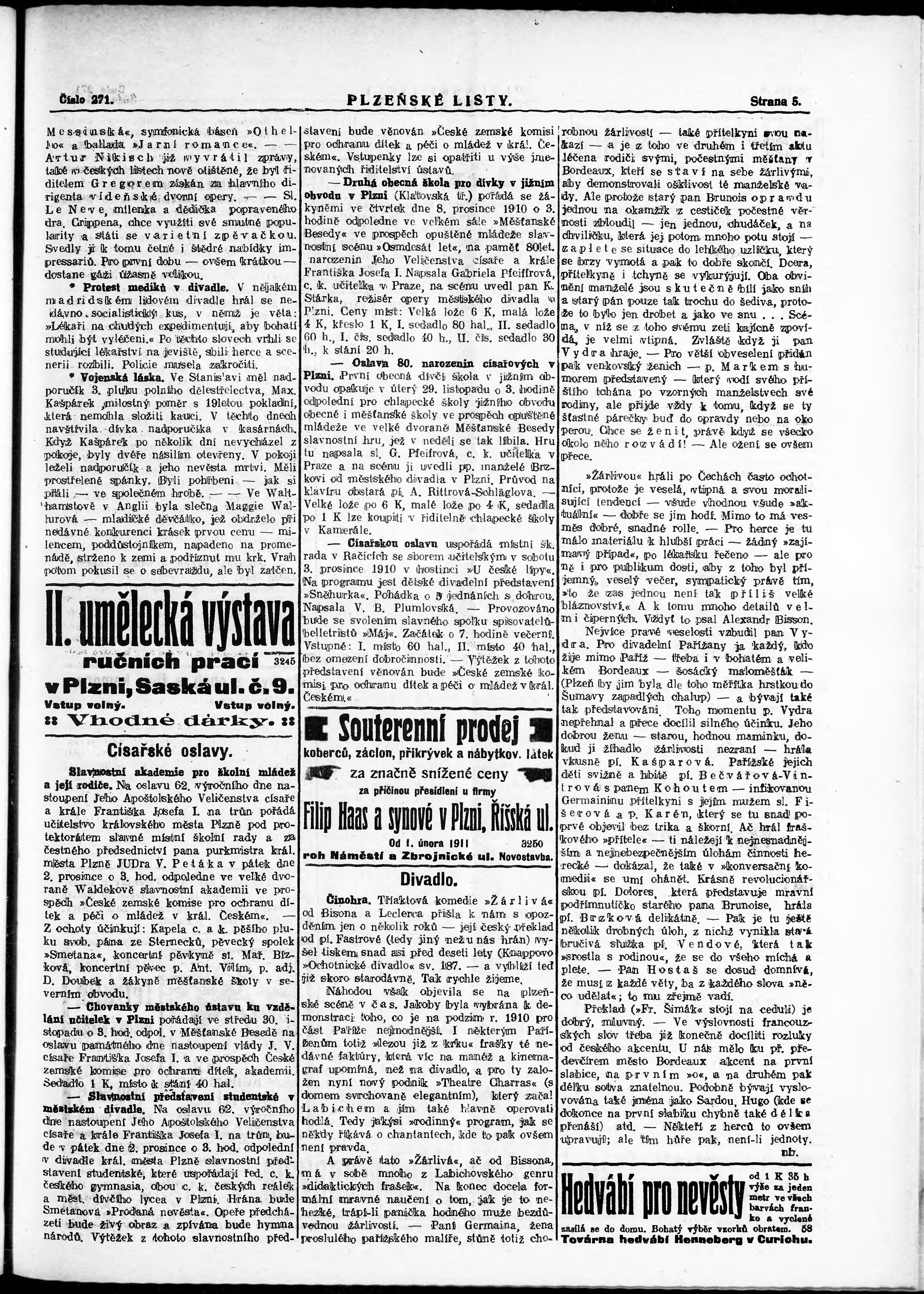 * Datum vydání výtisku: 28.11.1910 Číslo výtisku: 271 Poznámky k výtisku: nekonzistence číslování stran;