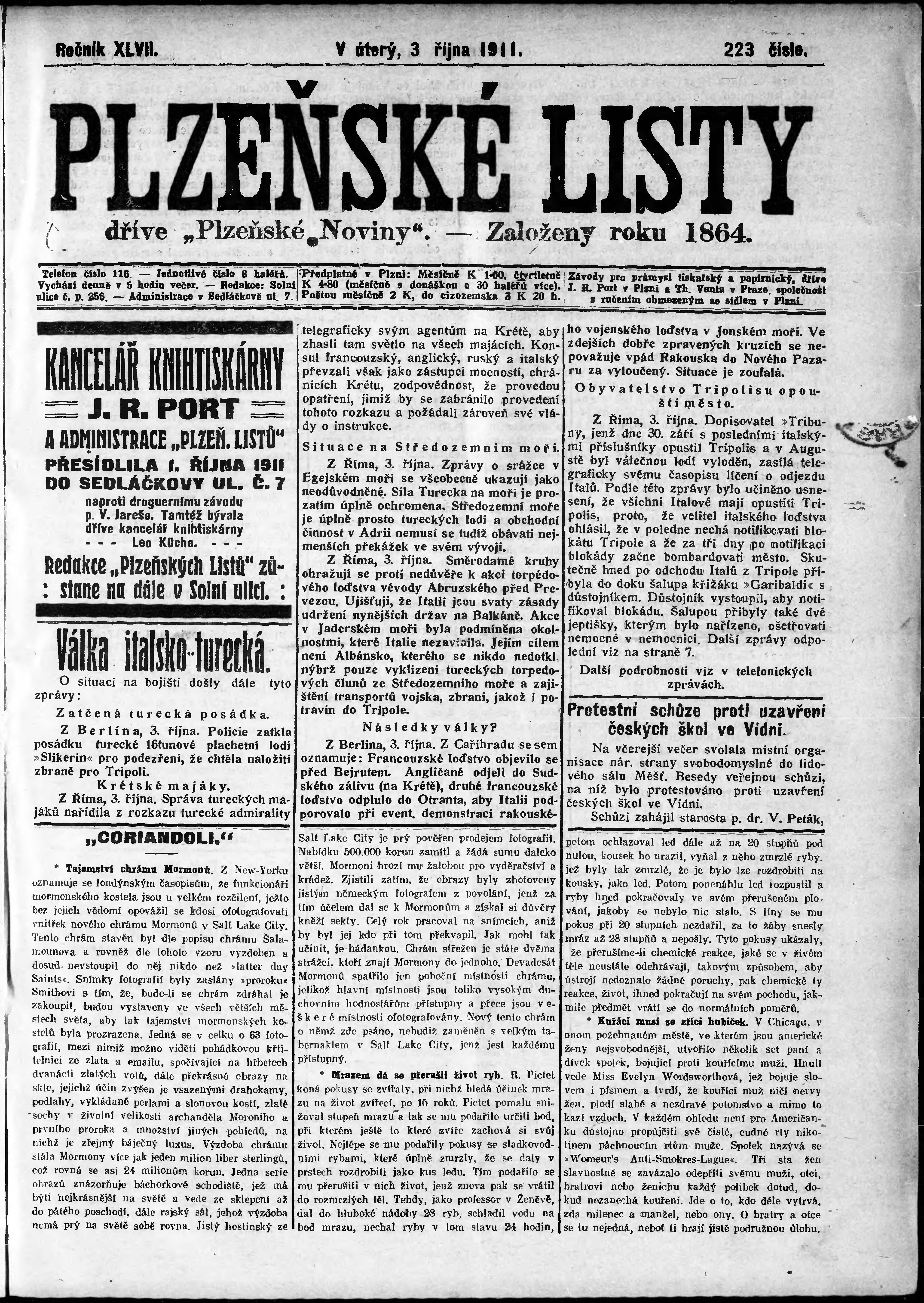 * Datum vydání výtisku: 3.10.1911 Číslo výtisku: 223